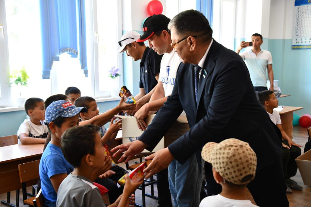 Балаларды қорғау күнімен қатар келген шарада Уәлихан Жамалханұлы балаларға тәттілерді тарту етіп, риясыз қуанышына куә болды.