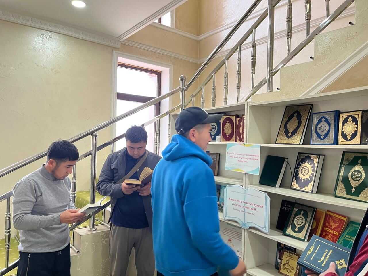 Аудан орталығындағы «Есен ана» мешіті жанынан ашылған кітапхана нүктесінде жұма намазына жиналған көпшілікке жаңа әдебиеттер ұсынылды.