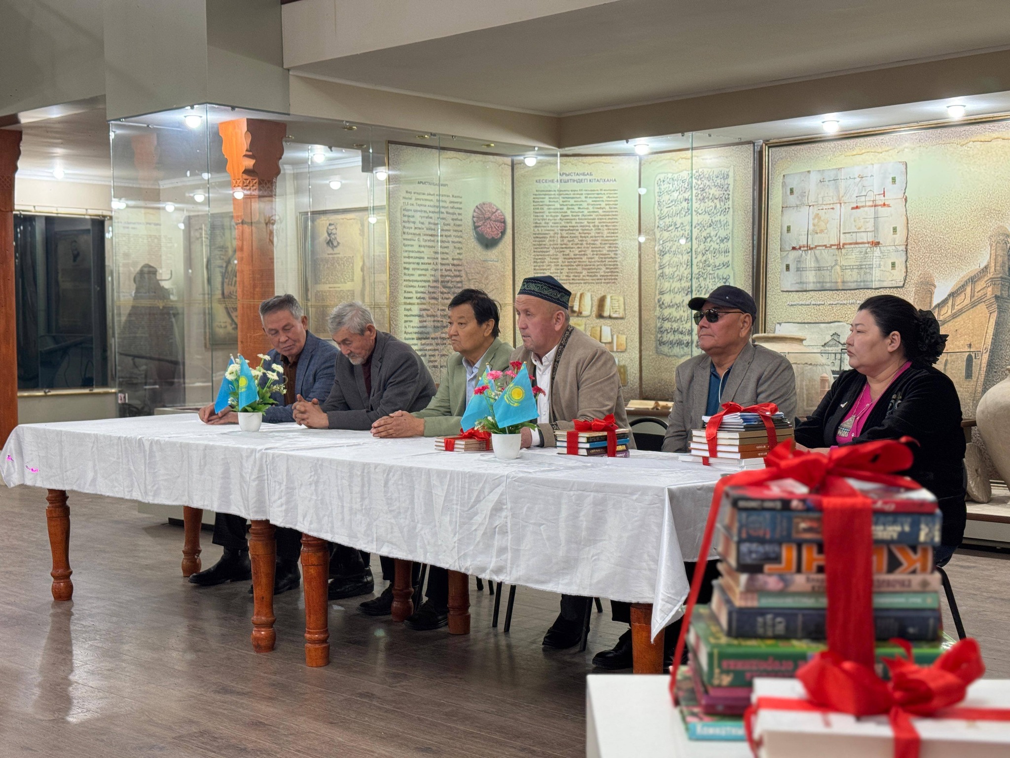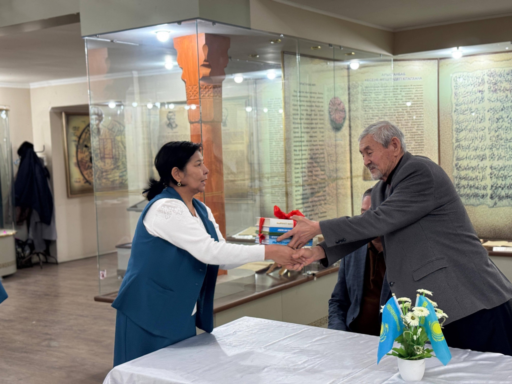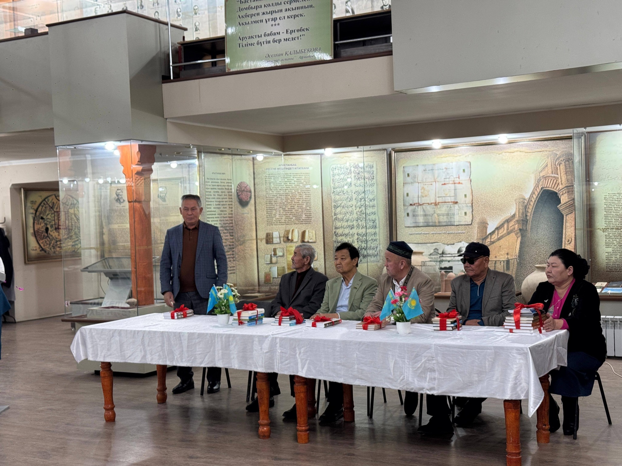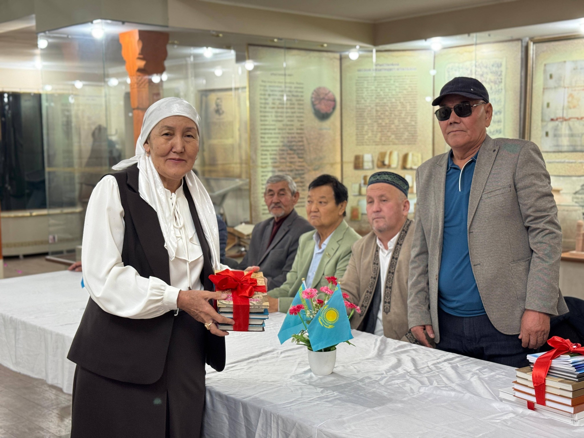 📚Осы айтулы күнге орай аудандық орталық кітапхана қызметкерлері Руханият Әбу Нәсір әл-Фараби музейінде арнайы акция ұйымдастырды. Акция барысында кітапханамыздың тұрақты оқырмандары Оразкүл Базарбайқызы және Бейсенбай Бекжан, Сапарбаев Бақытжан, Есенбаев Нығмет ағаларымыз өз жеке кітапханаларынан бірнеше дана кітаптарды орталық кітапханаға сыйға тартты. Сыйланған әрбір кітап –оқырман жүрегіне жол табатынына сенім білдіре отырып, кітап сыйлаған оқырман-ағаларымызға алғыс білдіреміз!