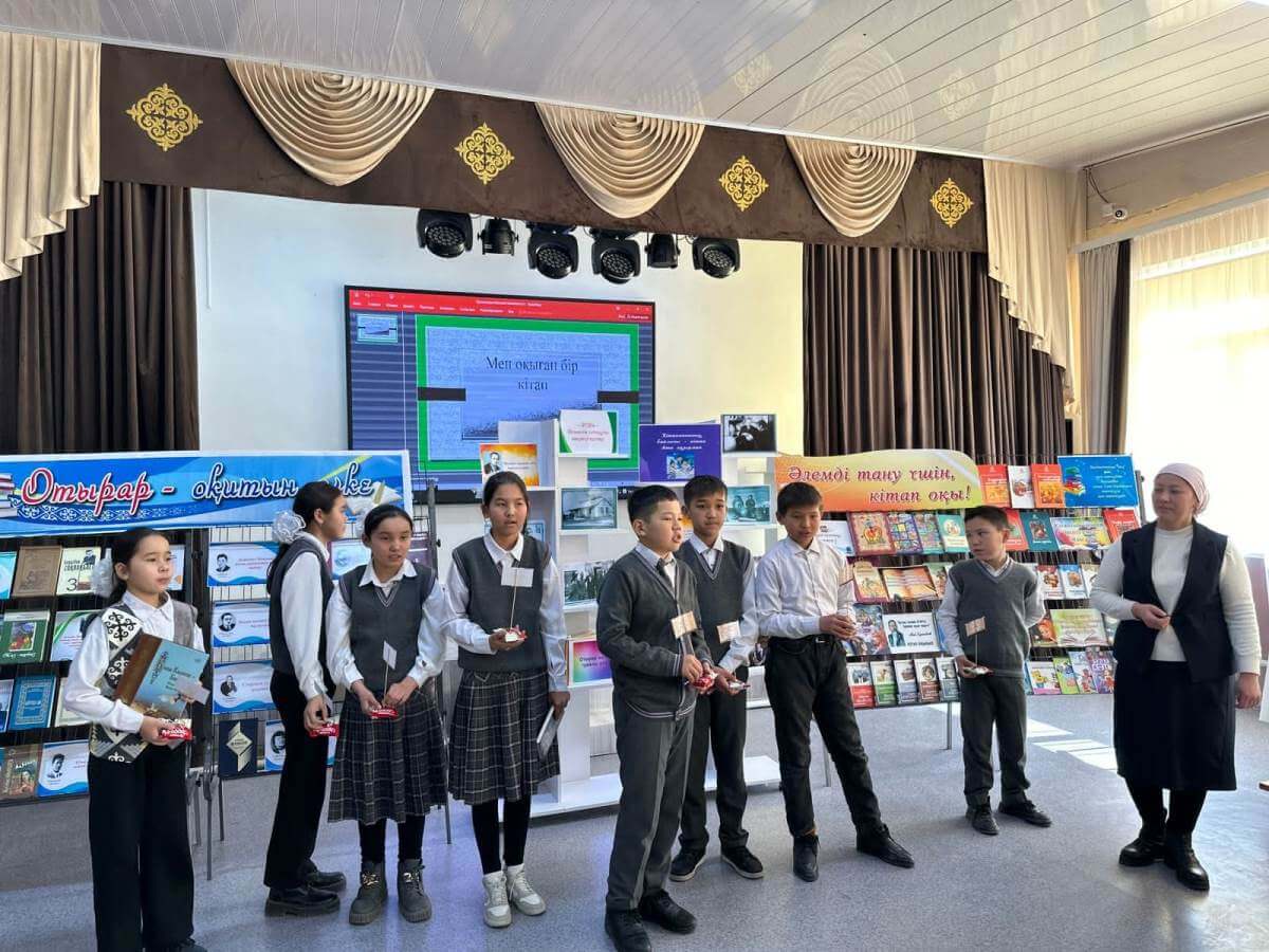 «Оқитын ұлт» жобасы аясында жасалған жоспарға сәйкес орталық кітапхананың ұйымдастыруымен үстіміздегі жылдың атаулы күндері мен «Бір ел - бір кітап», «Бір өлке - бір кітап» акцияларын насихаттау мақсатында Өзбекәлі Жәнібеков атындағы мектеп-лицейінде «Отырар - оқитын өлке», «Әлемді тану үшін кітап оқы!» атты кең көлемдегі жылжымалы кітап көрмесінің таныстырылымы өткізілді.