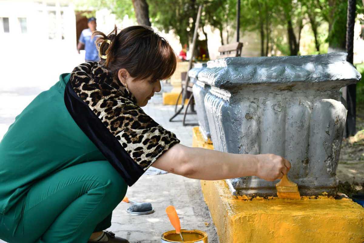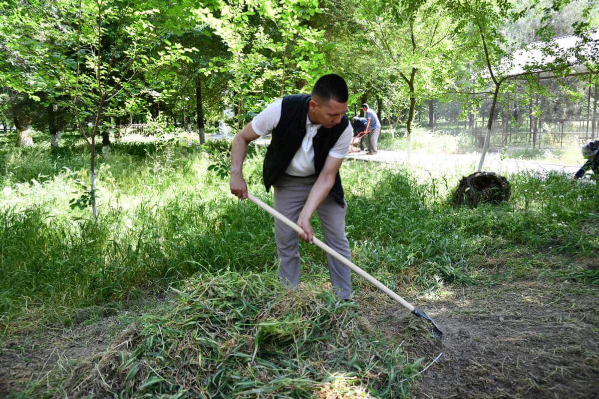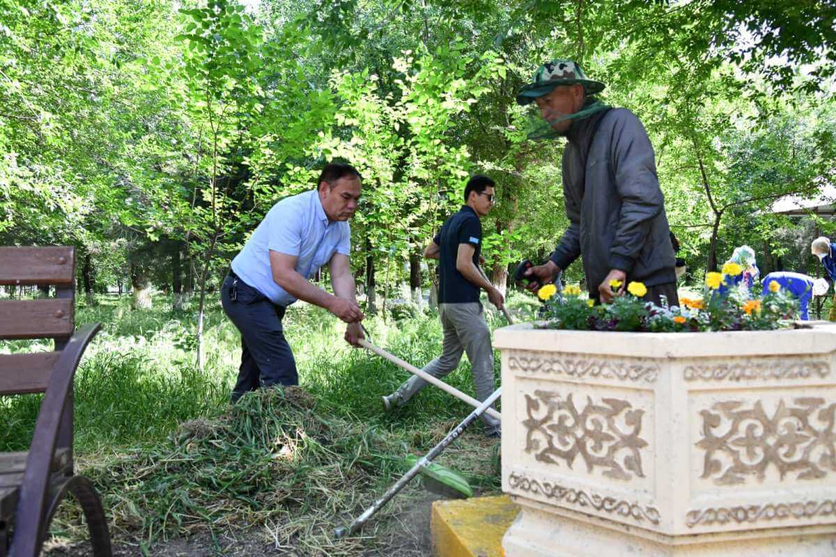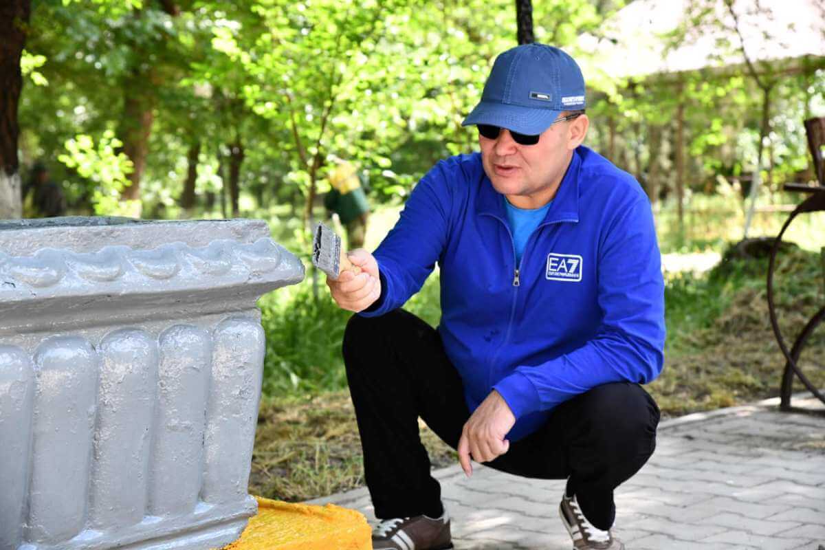 Іс-шара барысында саябақтың шарбақтарды ретке келтіріп, ағаштарды ақтау, келушілерге арналған арнайы орындықтарды сырлау және ретсіз өскен ағаштарды аралап кесу жұмыстары ұйымдастырылды.