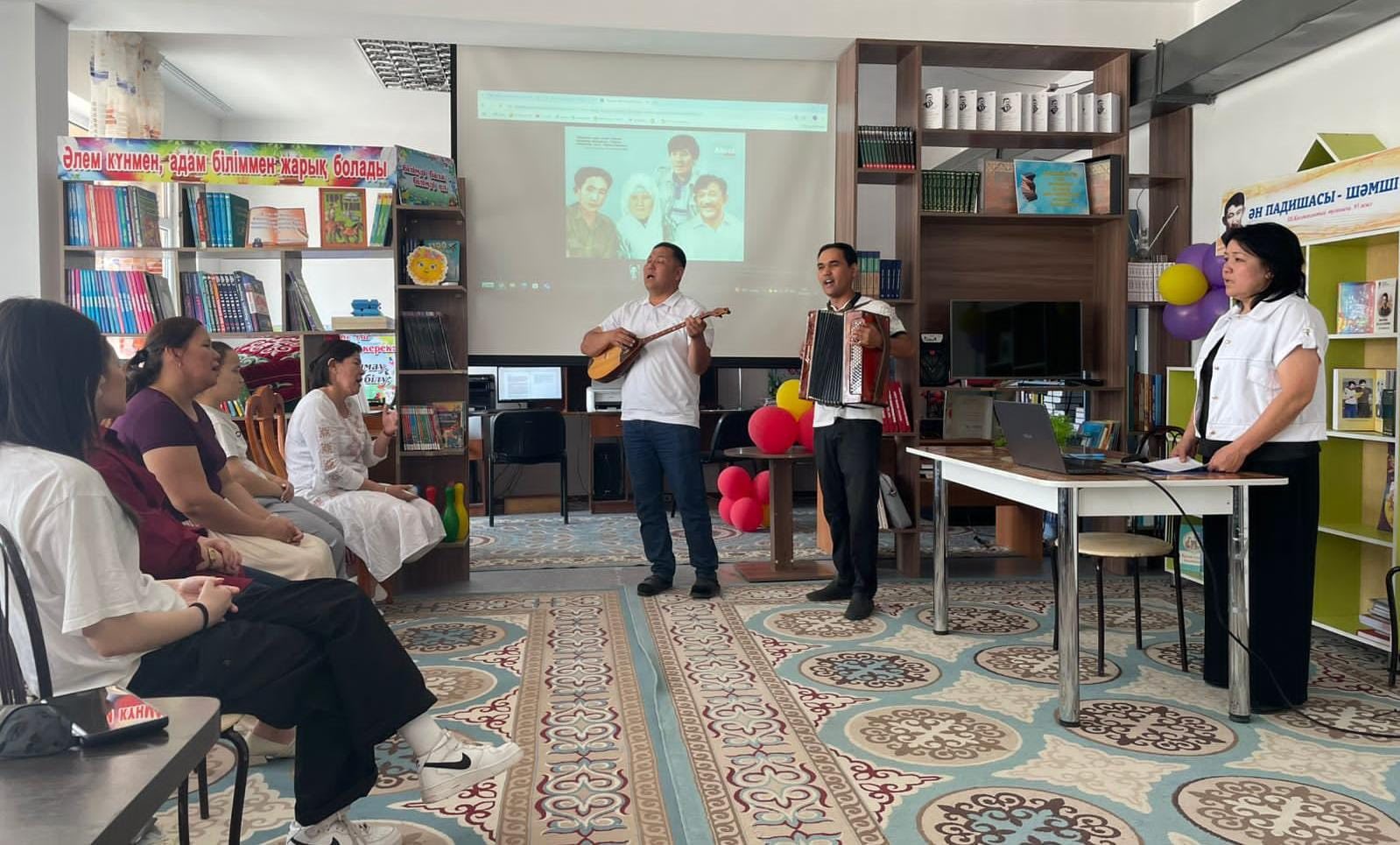 Аудандық орталық кітапхананың ұйымдастыруым Ш. Қалдаяқовтың 95 жылдық мерейтойына арналған «Ән падишасы – Шәмші аға» атты ән кеші өткізілді.