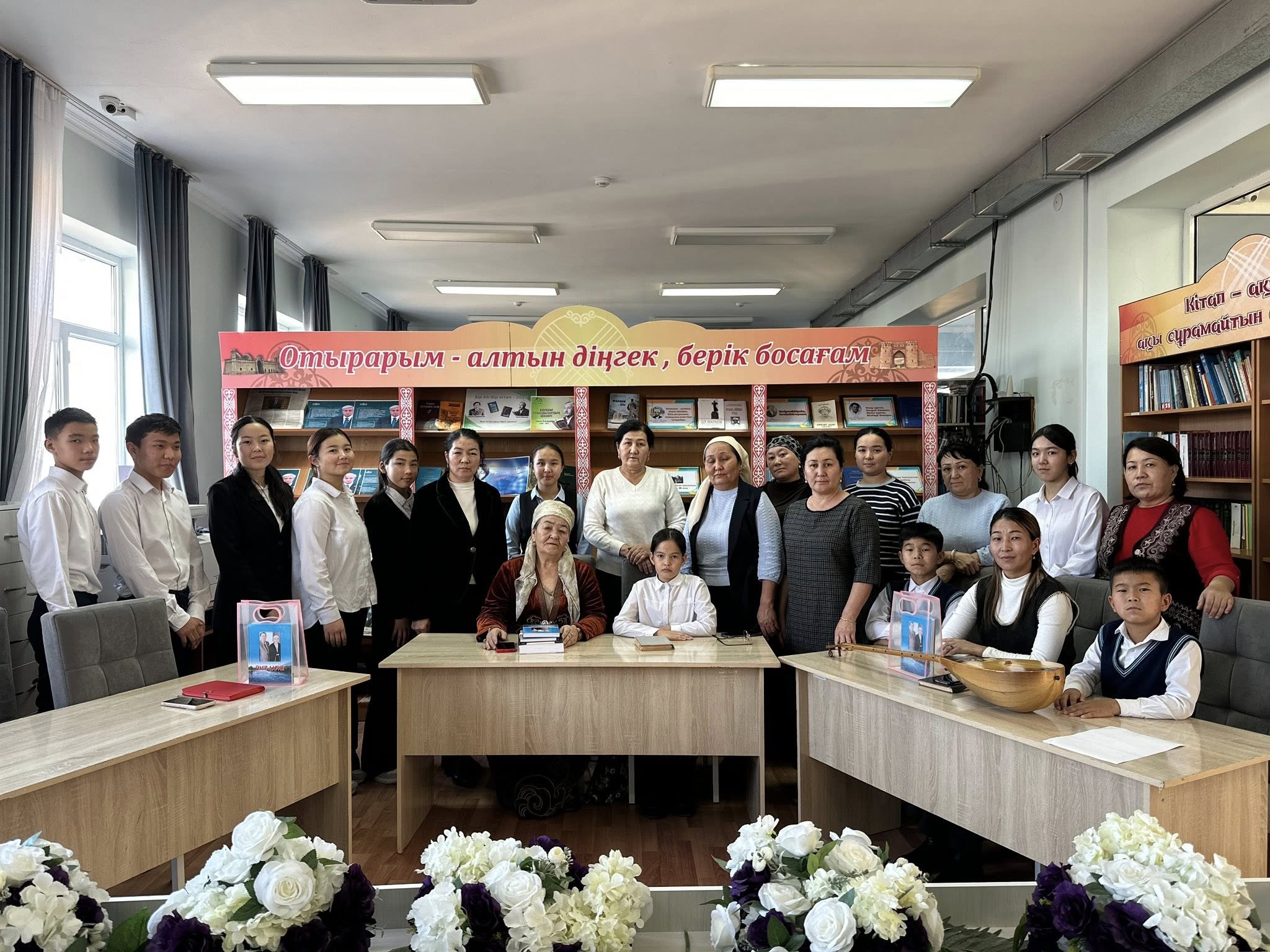 Әрбір ұлттың баласы өз ұлты үшін қызмет қылатын болғандықтан, баланы сол ұлттың тәрбиесімен тәрбиелеуге міндетті – деп Мағжан Жұмабаев айтқандай, болашақ ұрпағымызды тәрбиелегенде, оларға жастайынан имандылық пен ұлттық қасиеттерді сіңіре білсек, сонда ғана біз ұлттық рухы дамыған, Отанының гүлденуіне өз үлесін қоса алатын азамат өсіре аламыз. Міне, осындай мақсатта кітапханамыздың тұрақты оқырманы Бейсенбай Бекжан ағамыздың отбасына барып «Отбасы құндылықтары және ұлттық тәрбие» тақырыбында пікір алмасу өткізілді. Сұхбат барысында «Ақпараты көп, әлеуметтік желіге тәуелді болып өсіп келе жатқан ұрпақтарымызды нағыз толыққанды тұлғаға айналдыру үшін ұлттық құндылықтарымызды қалай бала бойына сіңіре аламыз?», «Отбасындағы жылулық, ата-ана мен бала арасындағы қатынас», «Кітап оқу бізге не береді?» деген сұрақтар төңірегінде әңгіме өрбіді.