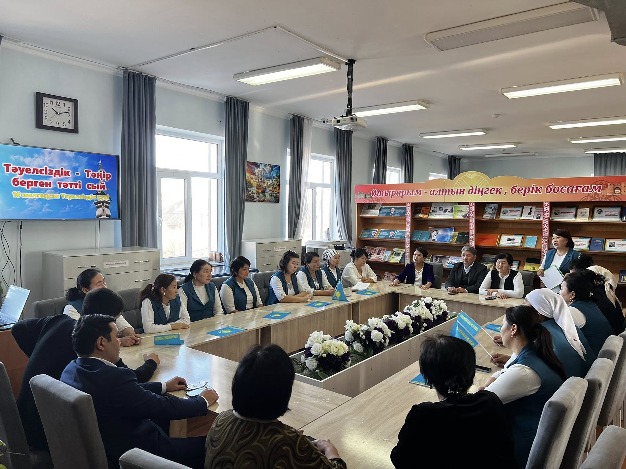 📌Төл тарихымыздағы мерейлі белес - Тәуелсіздік күніне орай орталық кітапханада "Тәуелсіздік - Тәңір берген тәтті сый" атты кездесу кеші болып өтті.