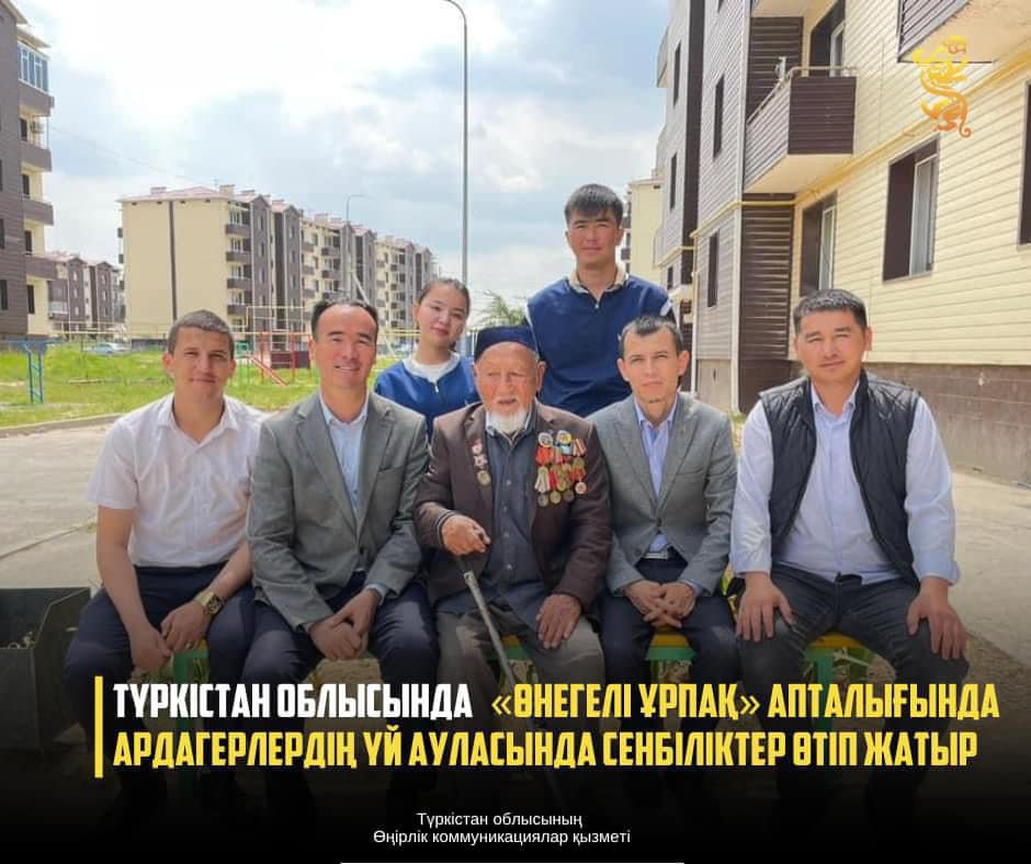 ТҮРКІСТАН ОБЛЫСЫНДА «ӨНЕГЕЛІ ҰРПАҚ» АПТАЛЫҒЫНДА АРДАГЕРЛЕРДІҢ ҮЙ АУЛАСЫНДА СЕНБІЛІКТЕР ӨТІП ЖАТЫР