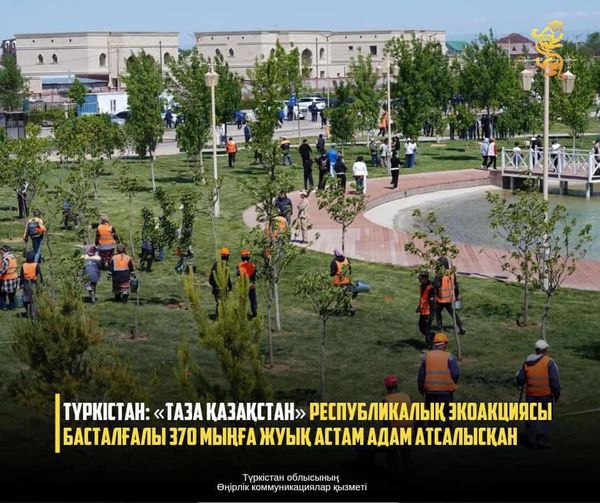 ТҮРКІСТАН: «ТАЗА ҚАЗАҚСТАН» РЕСПУБЛИКАЛЫҚ ЭКОАКЦИЯСЫ БАСТАЛҒАЛЫ 370 МЫҢҒА ЖУЫҚ АСТАМ АДАМ АТСАЛЫСҚАН