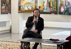 Сахна төріне шығып, елге сәлем берген өнер иесі өзінің «Тамшы» кітабынан өлең оқып, суретшілік өнердің қыр-сыры туралы әңгімелей келе, Мысыр елінен Әбу Нәсір әл-Фарабидің музыкалық аспаптарының көшірмесін елге жеткізгені туралы айтып өтті.