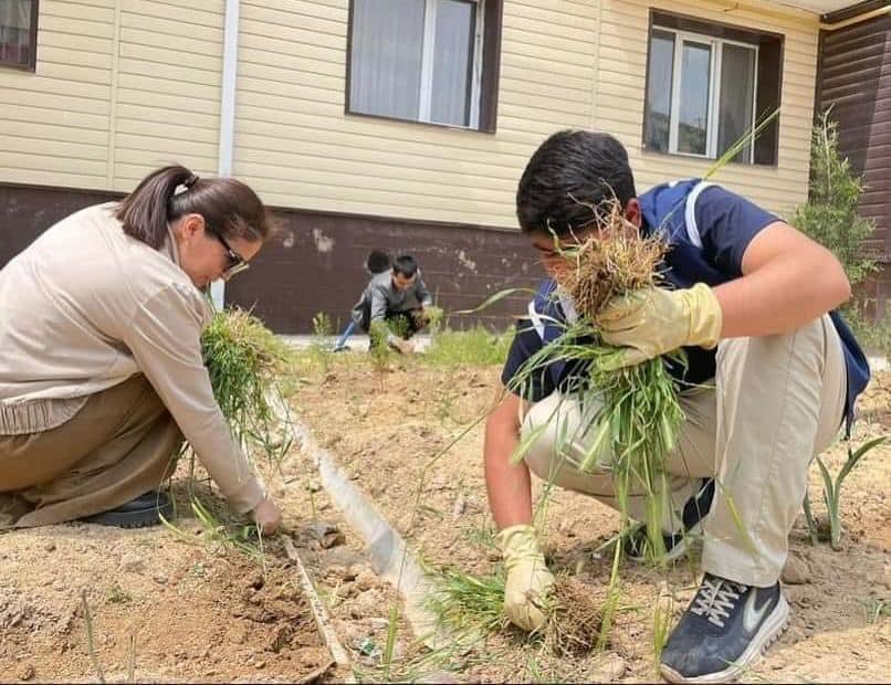В ТУРКЕСТАНСКОЙ ОБЛАСТИ НА НЕДЕЛЕ "ӨНЕГЕЛІ ҰРПАҚ" ВО ДВОРЕ ДОМА ВЕТЕРАНОВ ПРОХОДЯТ СУББОТНИКИ