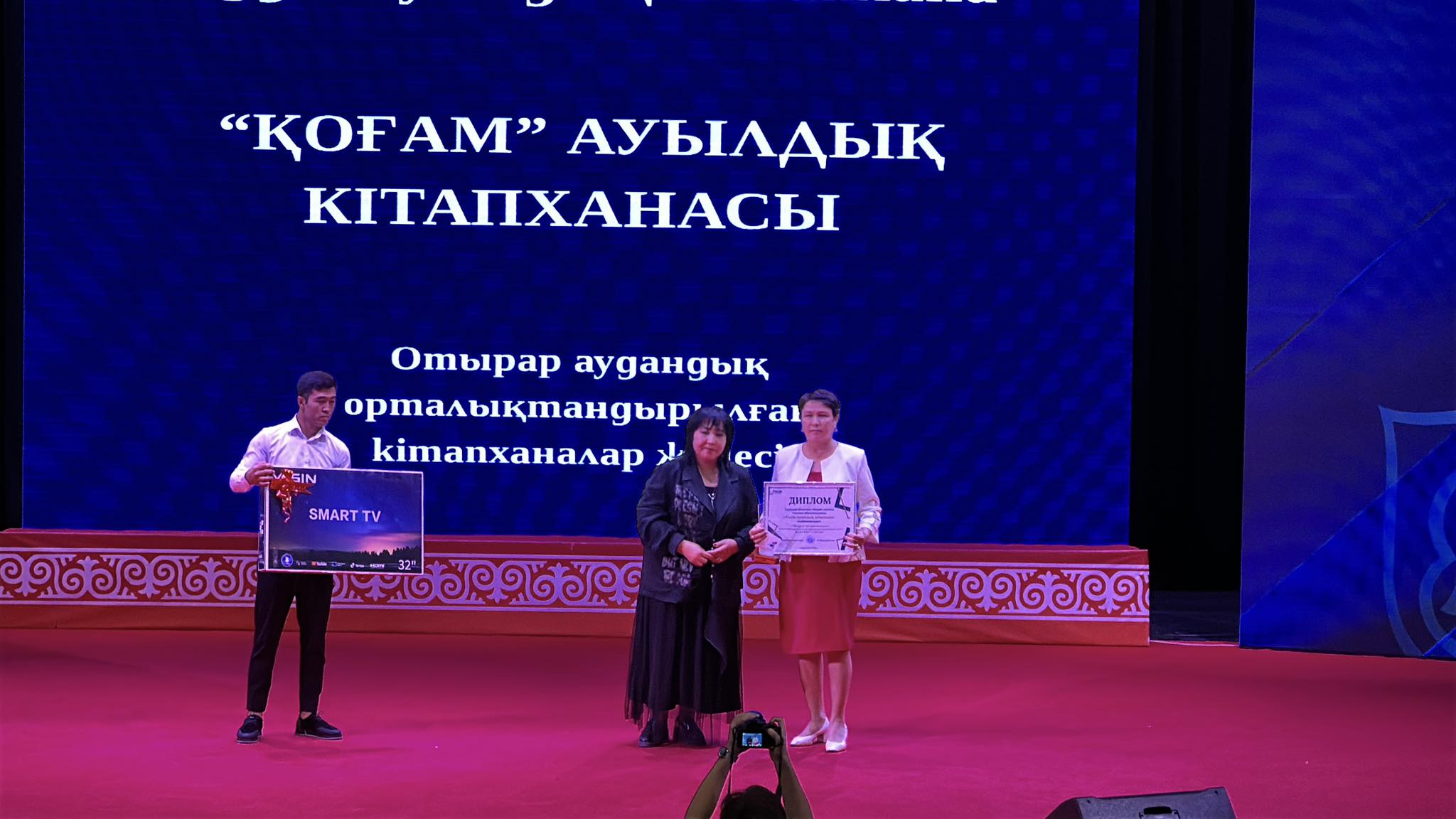 Отырар кітапханасы ұсынған "Отбасы. Кітап. Кітапхана" отбасылық оқу жобасы - "Үздік аудандық жоба" , ал, Қоғам ауылдық модельді кітапханасы - "Үздік ауылдық кітапхана" деп танылды. Сондай-ақ, Кітапхананы дамыту бөлімінің меңгерушісі Г.Дәулетова "Қазақстанның Құрметті кітапханашысы" төсбелгісімен, кітапханашы Ш.Жанпейісова Түркістан облыстық мәслихатының Алғыс хатымен марапатталды.