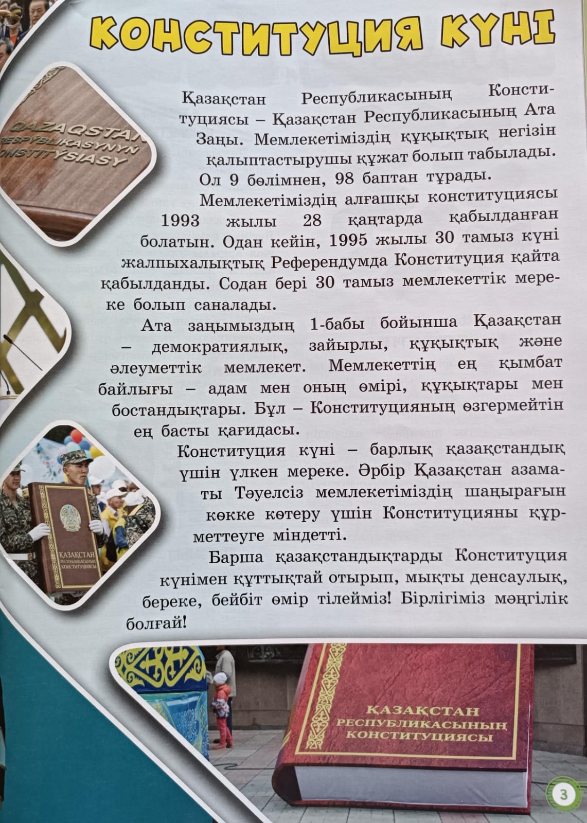 Баршаңызды Ата Заңымыз – Конституция күнімен шын жүректен құттықтай отырып, зор денсаулық, еңбекте табыс, отбасыларыңызға бақыт тілейміз.