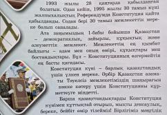 Басты құжатымыз қолданысқа енгізілген сәттен бастап еліміз тұрақты даму жолына түсіп, әлемнің алпауыт елдерімен терезесін теңестірді.