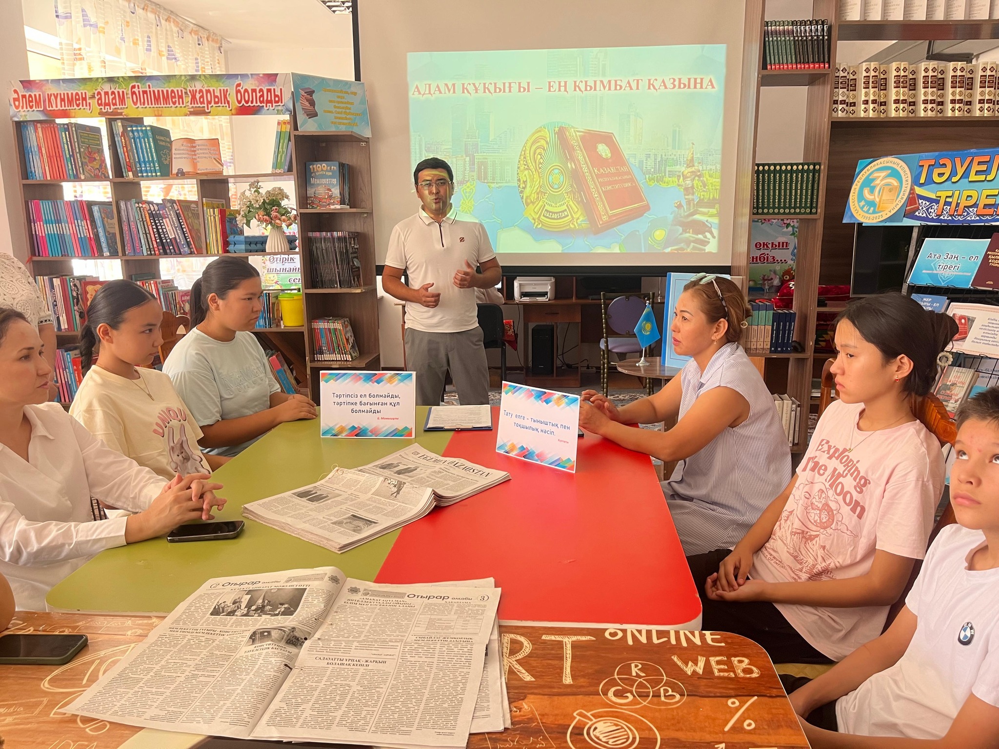 Бүгін Отырар аудандық балалар кітапханасында Қазақстан Республикасының Конституциясының 30 жылдығына арналған «Адам құқығы – ең қымбат қазына» атты тақырыпта дөңгелек үстел өтті.
