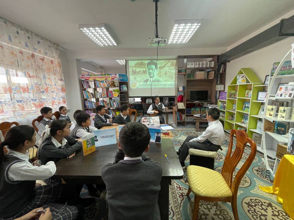 Кітап көрмесіне шолу жүргізген кітапханашы Тұрар Рысқұловтың қиын тағдыры мен ұлт үшін жасаған қызметі туралы таныстыра отырып, оқушыларға Қазақстанның халық жазушысы Мұртаза Шерханның «Қызыл жебе» атты роман - эпопеясын оқуға ұсынды.