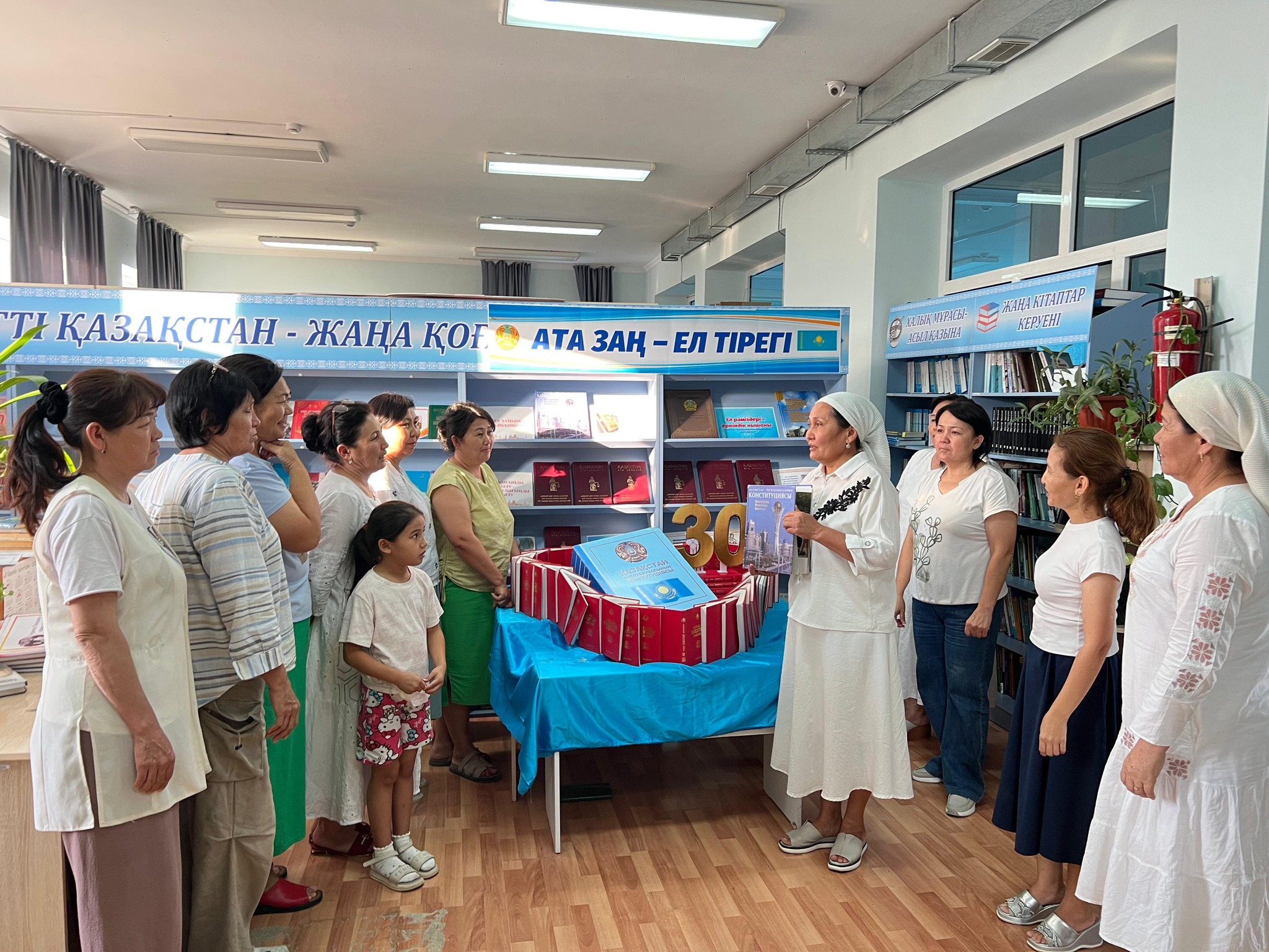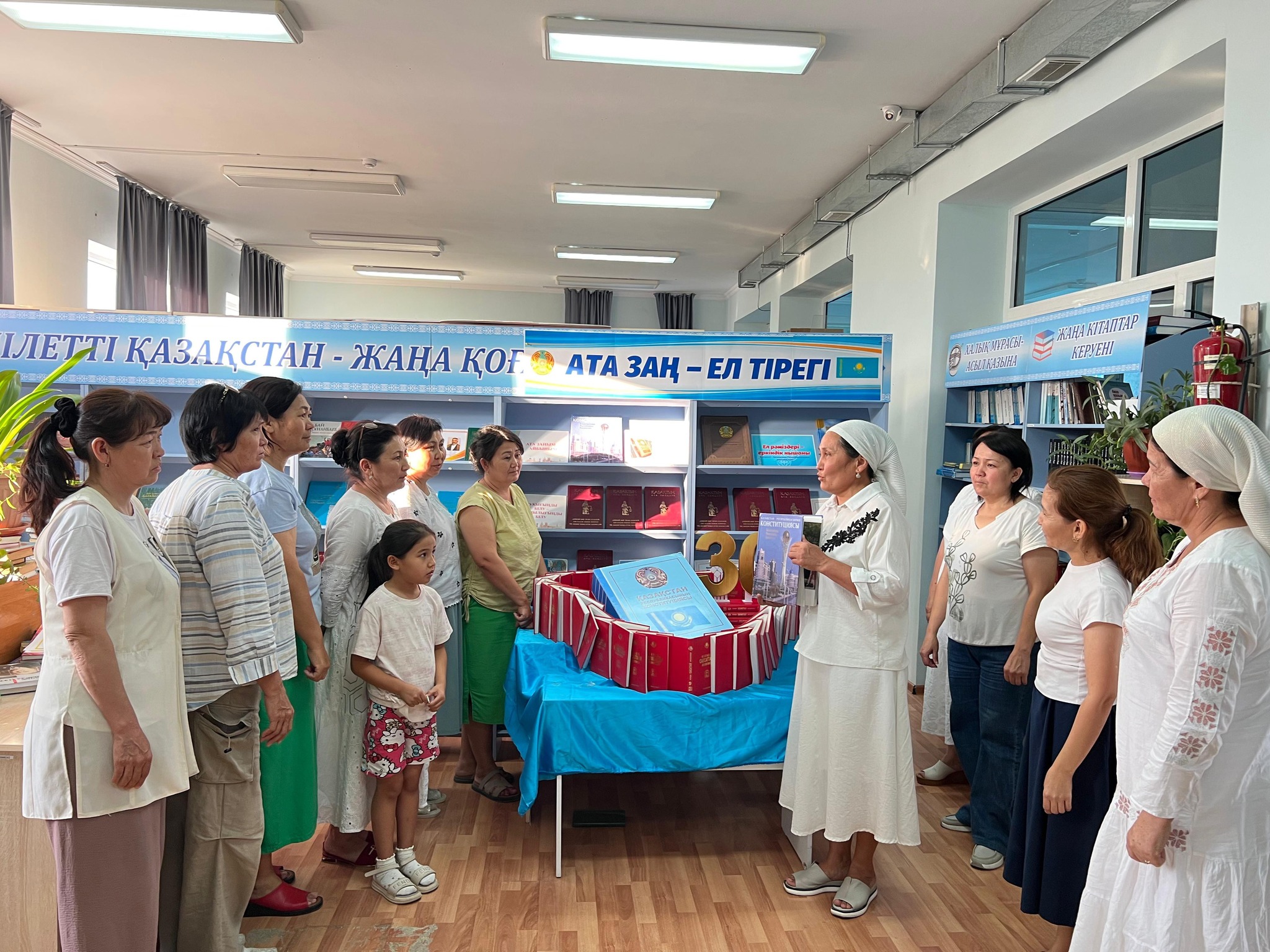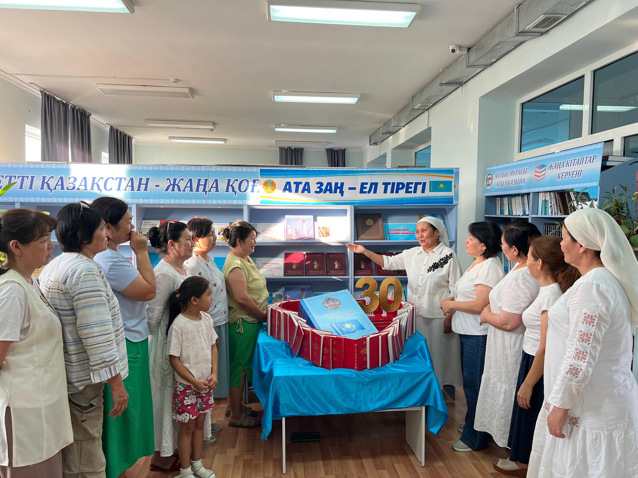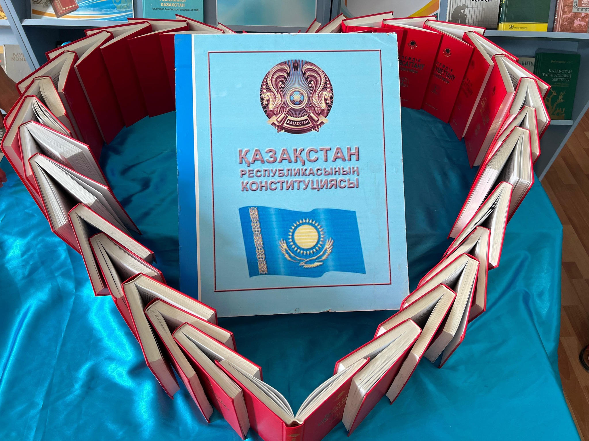 ҚАЗАҚСТАН Республикасы Конституциясының 30 жылдығына орай аудандық орталық кітапханада "АТА ЗАҢ - ЕЛ ТІРЕГІ" атты көрме - инсталляция ұйымдастырылып, оқырмандар назарына ұсынылды.