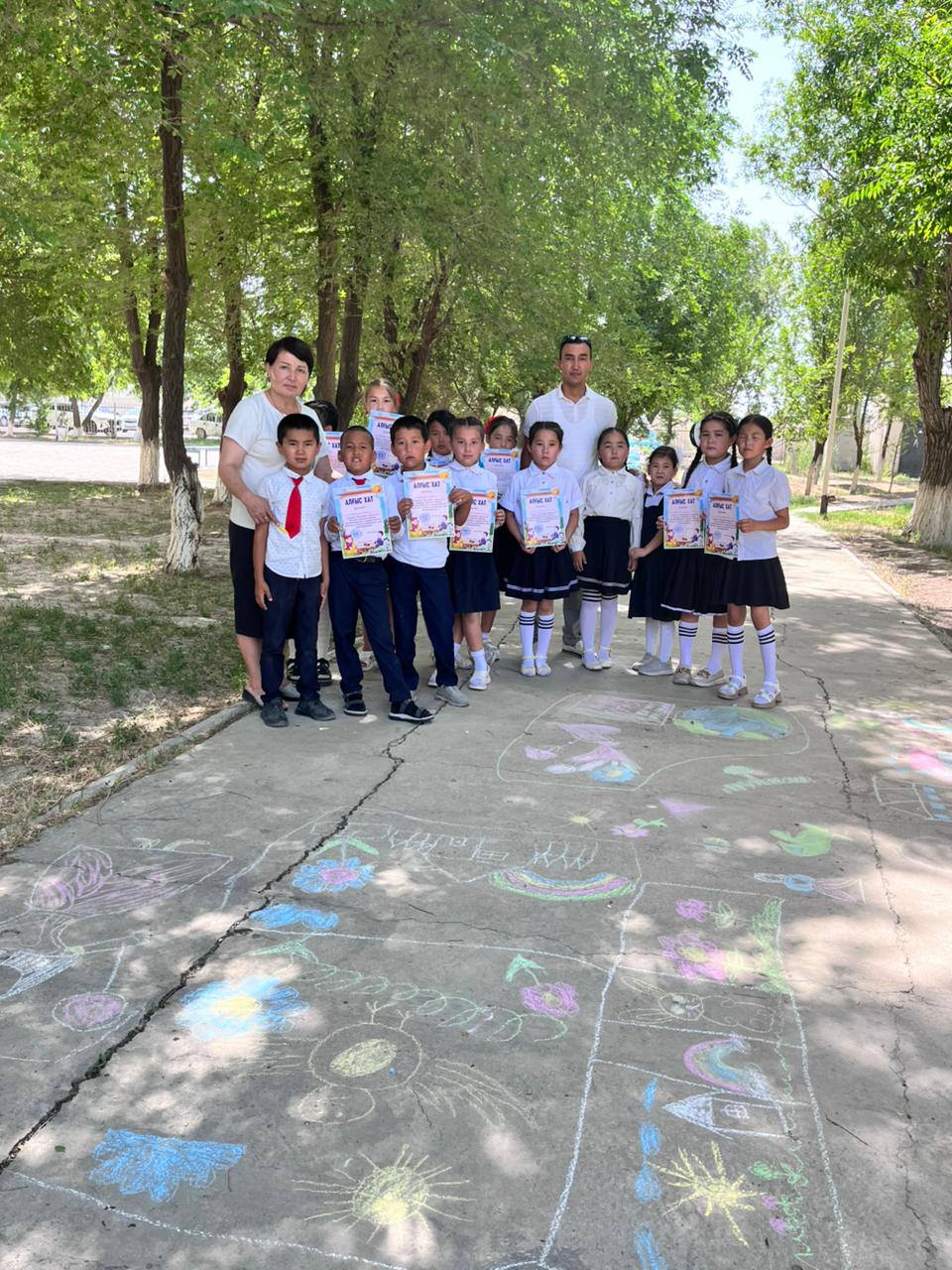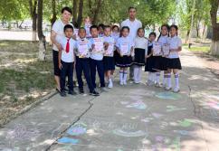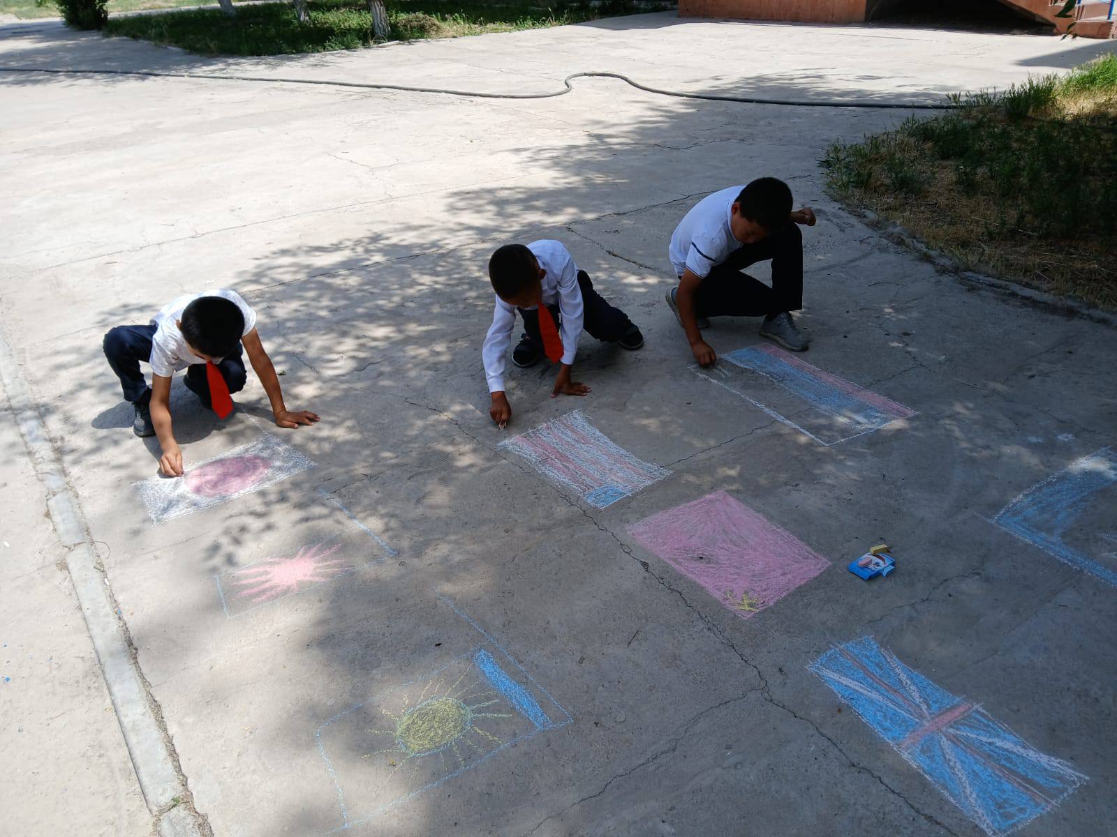 Балалар түрлі-түсті борлармен асфальт бетіне өз қиялдарын бейнелеп, тақырыптарға сай суреттер салды. Сайыс соңында барлық қатысушыларға алғыс хаттар мен сыйлықтар табысталды.