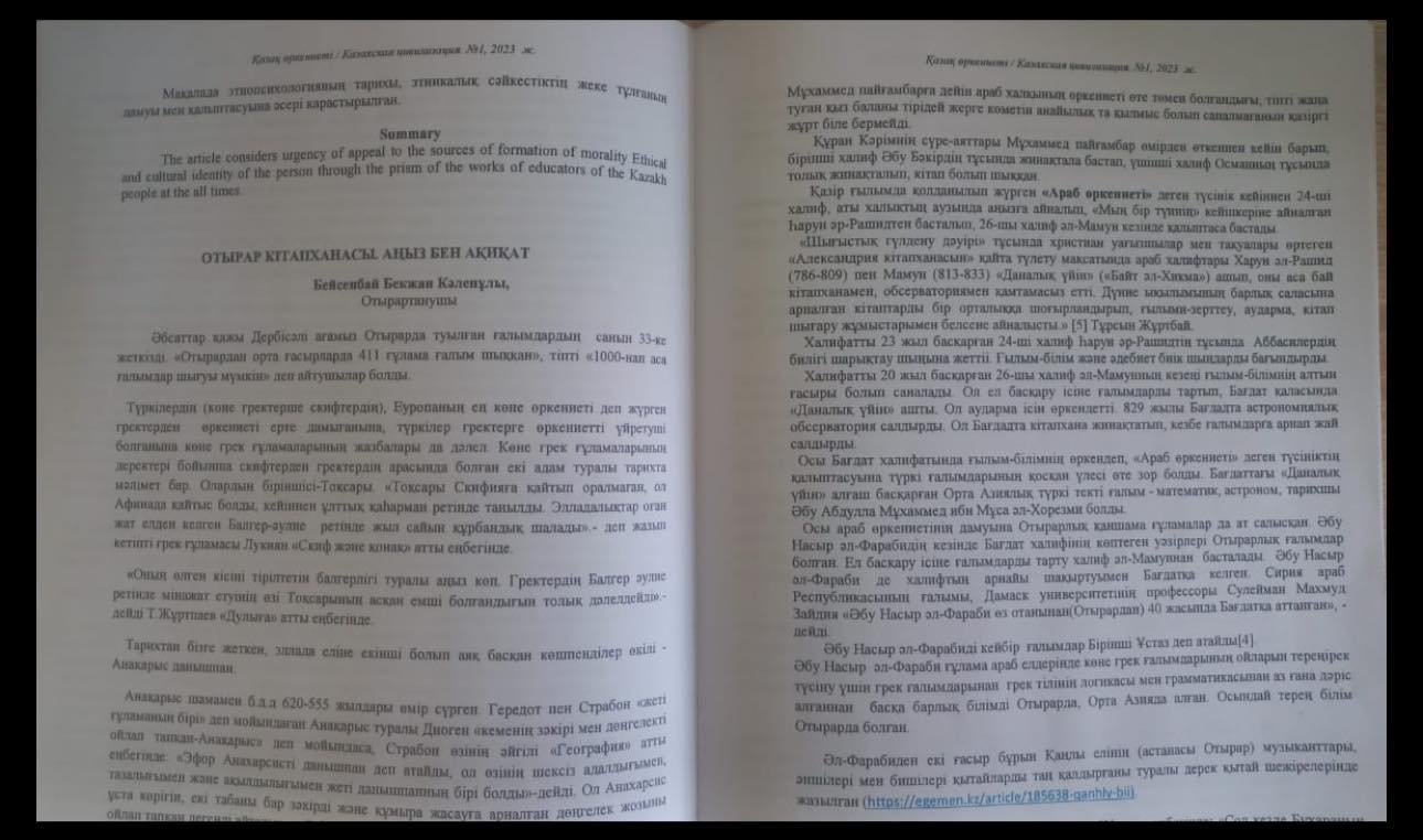 Әлемнің көптеген елдерінен келген академик, докторлардың қатысуымен өткен бұл конференцияның материалдары жинақталып, журнал болып шықты. Оның ішіне Бекжан ағамыздың да баяндамасы енген екен. Сонымен қатар Еренғайып Омаров Бекжан ағамыз сыйлаған, суретші Әділхан Мәліктің "Отырар кітапханасы" атты суретін де енгізіпті.