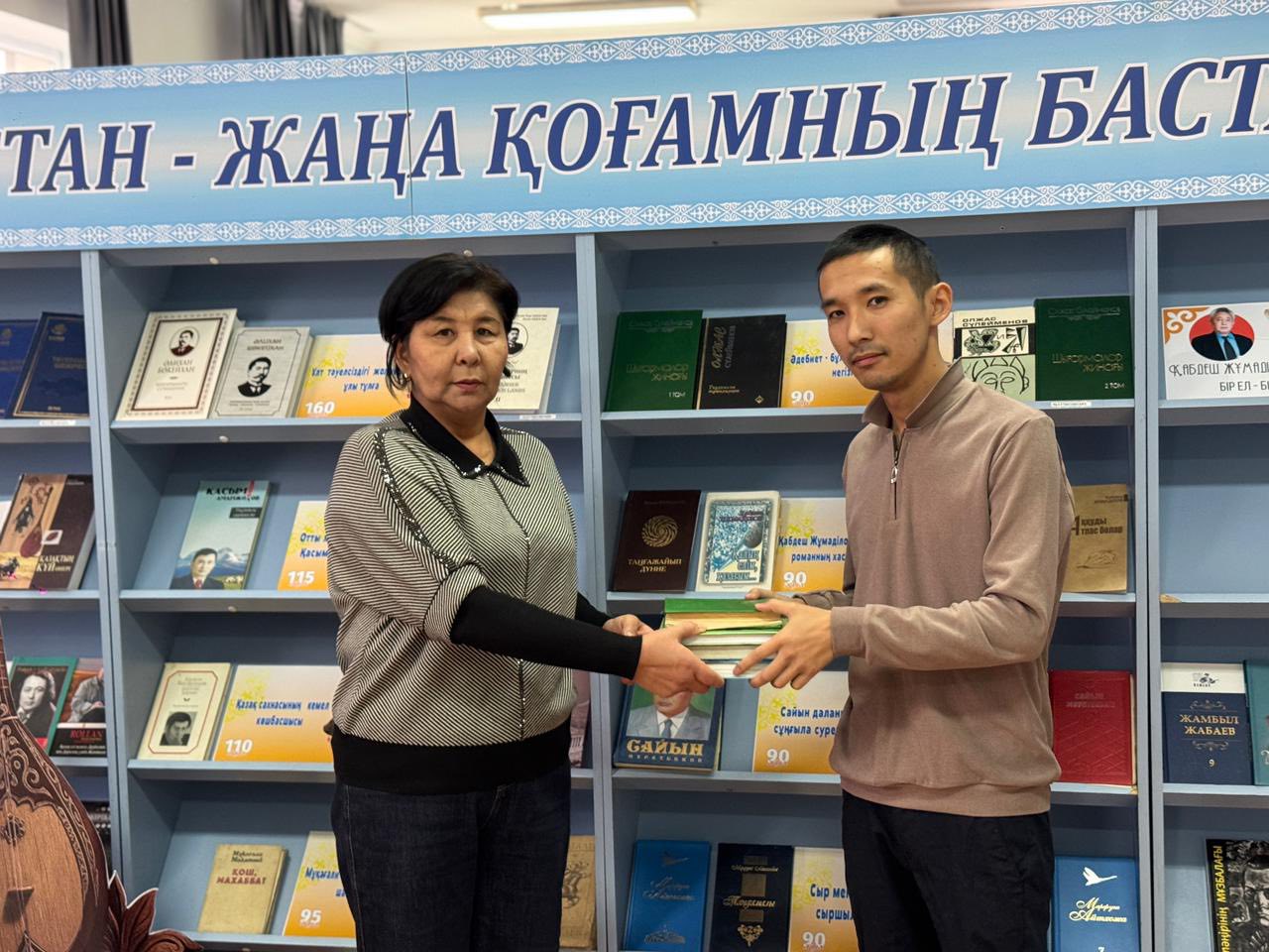 "Кітапханаға кітап сыйла", акциясы аясында Отырар кітапханасына тұрақты оқырман Әділет Әбсаттарұлы өзінің жеке кітапханасынан бірнеше дана кітапты сыйға тартты.
