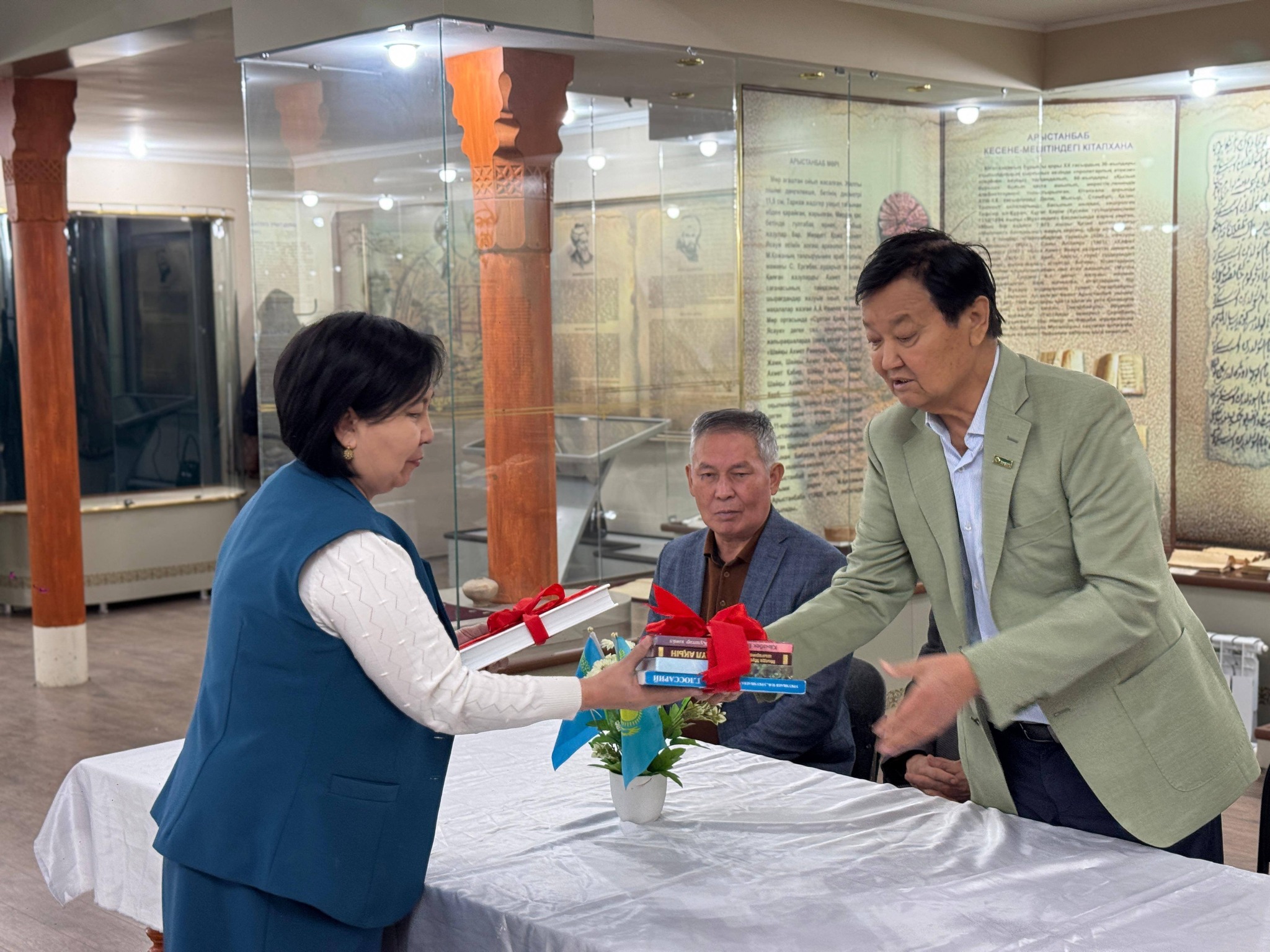 📚Осы айтулы күнге орай аудандық орталық кітапхана қызметкерлері Руханият Әбу Нәсір әл-Фараби музейінде арнайы акция ұйымдастырды. Акция барысында кітапханамыздың тұрақты оқырмандары Оразкүл Базарбайқызы және Бейсенбай Бекжан, Сапарбаев Бақытжан, Есенбаев Нығмет ағаларымыз өз жеке кітапханаларынан бірнеше дана кітаптарды орталық кітапханаға сыйға тартты. Сыйланған әрбір кітап –оқырман жүрегіне жол табатынына сенім білдіре отырып, кітап сыйлаған оқырман-ағаларымызға алғыс білдіреміз!