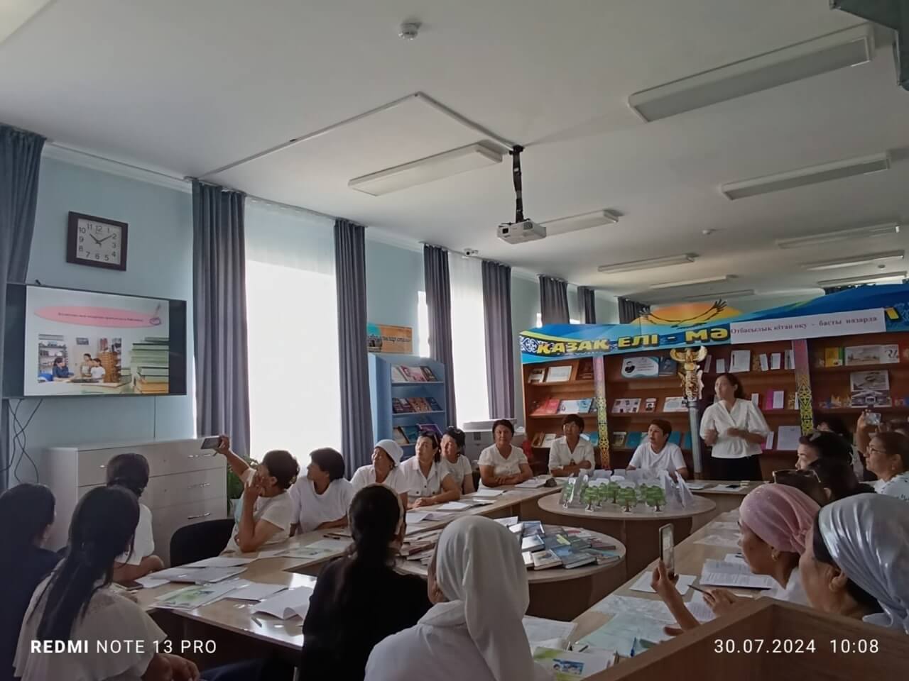 Кітапхананы дамыту бөлімінің  ұйымдастыруымен «Кітапханалық  қызмет  көрсету:  функциялары  мен  принциптері» атты тақырыпта  зерделі кеңес болып  өтті. Күн тәртібінде ауылдық кітапханашылардың жұмысында отбасылық оқу  мәселесін көтеру.  Кітапхана әдіскері  Р.Пернебаева «Орталықтандырылған  кітапхана жүйесі қызметіне талдау» жасап, бірінші  жарты  жылдық  есепте жіберілген  кемшіліктер туралы айта келіп, өтетін  іс-шараларды жаңа форматта  өткізу  мәселесі туралы әдістемелік кеңес беріп өтті. Бұдан соң зерделі кеңес бағдарламасы бойынша Көкмардан, Шытты ауылдық кітапхана меңгерушілері  С.Сұлтанбек, Г.Елемес «Кітапхана – оқырман  мен  кітап  арасындағы алтын көпір» «Ауыл кітапханасындағы отбасылық оқу үрдісі» атты тақырыптарда өздерінің іс-тәжірбиелерімен  бөлісті. Зерделі кеңестің келесі бағдарламасы бойынша «Кітаптың отбасылық тәрбиеде алатын орны» атты тақырыпта әріптестер арасында дөңгелек үстел өткізіліп, «Отбасында адам бойындағы асыл қасиеттердің қалыптасуына кітап оқудың пайдасы бар ма? Бар болса қандай?»,  «Балаларыңыздың кітап оқуға тартуда қандай әрекет етесіз?» деген сұрақтар төңірегінде кітапханашылар өз ойларын ортаға салды. Әдіскер Р.Пернебаева  отбасылық оқытудың тиімділігін айта келе, ауылдық кітапхана меңгерушілеріне «Оқимын мен, оқисың сен, оқимыз барлық әулетпен!» атты бастамамен  көпшілік  іс-шаралар өткізуді ұсынды. Зерделі кеңестің соңында кітапханашылар арасында «Миға шабуыл: Кітапханашы ойлайды, іздейді, шешеді» атты  іскерлік  ойын  ойнатылып, әріптестердің кәсіби біліктіліктері шыңдалды. Сонымен қатар «Отбасылық  оқу – ұрпақтар руханиятының  байланысы» атты отбасылық байқау мен сұхбаттың сценариі таратылды.