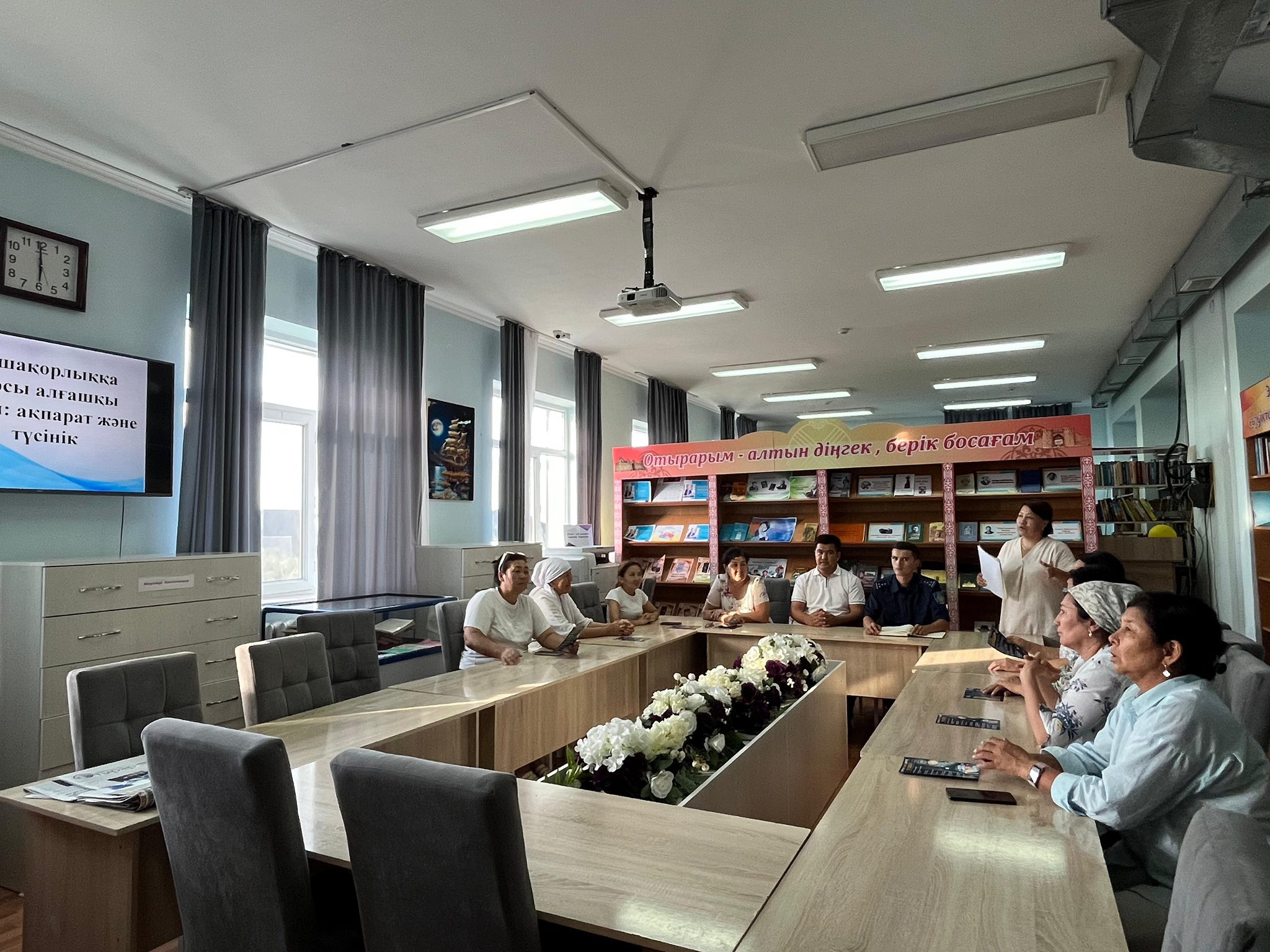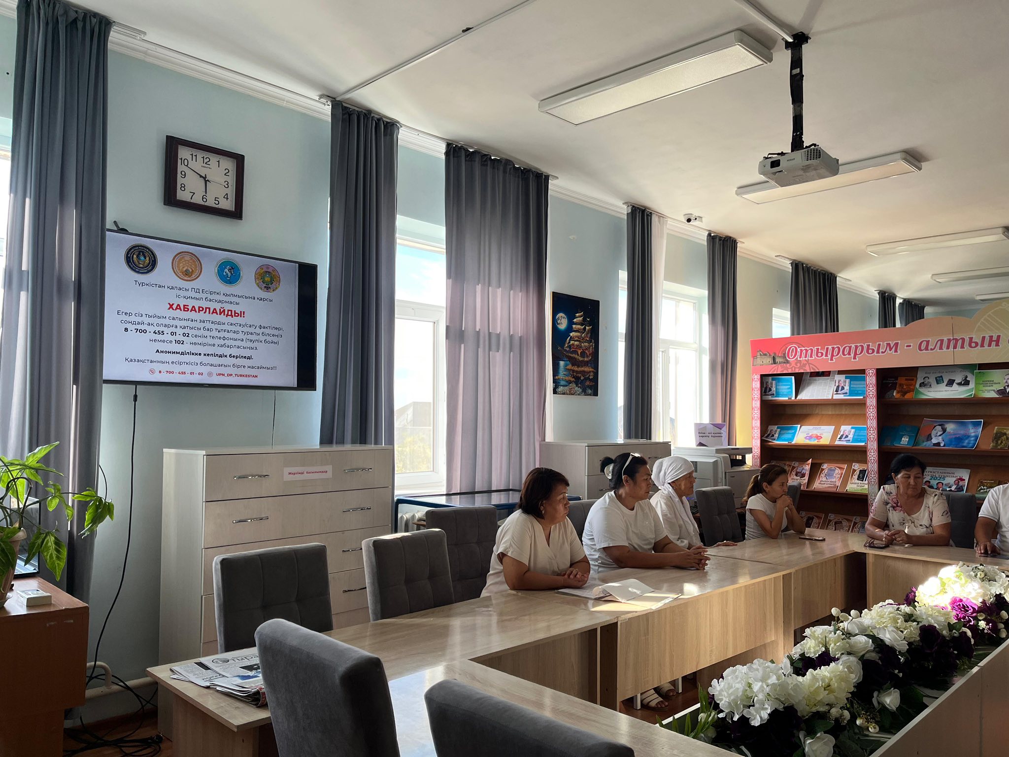 Аудандық орталық кітапханада «Нашақорлыққа қарсы алғашқы қадам: ақпарат және түсінік» тақырыбында тренинг сағаты өткізілді. Іс – шараны жүргізуші кітапханашы Ж.Серікқызы тақырыптың маңыздылығы, мақсаты турасында айтып түсіндірді. Кітапханашы Г.Әбзейтова тақырыптық баяндама жасады. Отырар АПБ КПБ жедел уәкілі полиция капитаны Р.Әсетілла есірткіні пайдаланып, оның кесірінен тапқан, өмір бойы құтыла алмас, сауықпас дертті жамап алған жандар туралы толықтай мағлұматтар беріп өтті. Деректер слайд арқылы көрсетілді. Кеш барысында жастардың жаман әдеттерден бойларын аулақ ұстау керектігі, салауатты өмір салтын ұстану қажеттігі туралы баса айтылды. Аудандық ішкі саясат бөлімінің маманы Ғ.Сәрсеков өз ой – пікірін білдіріп, жастарды жақсы өмір сүруге шақырды. Іс – шара соңы «Денсаулық – баға жетпес байлық» атты кітап көрмесін көпшілікке таныстырумен тәмәмдалды.
