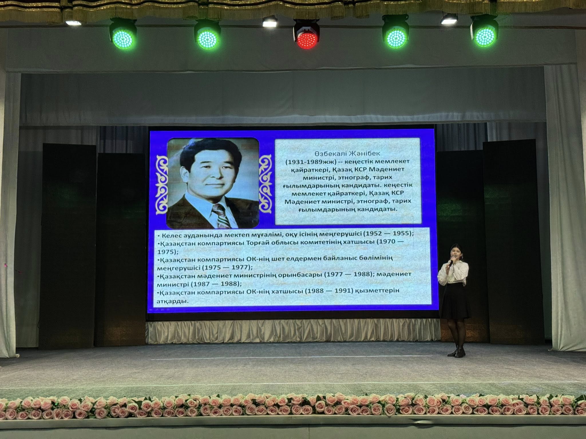 Түркістан облыстық мәдениет басқармасының қолдауымен, облыстық «Фараб» әмбебап ғылыми кітапханасының бастамасымен және аудандық орталық кітапхананың ұйымдастыруымен көрнекті мемлекет және қоғам қайраткері, тарихшы-этнограф, ұлт мәдениетін жаңғыртушы Өзбекәлі Жәнібектің туғанына 95 жыл толуына орай аудандық деңгейде тағылымды байқау болып өтті.