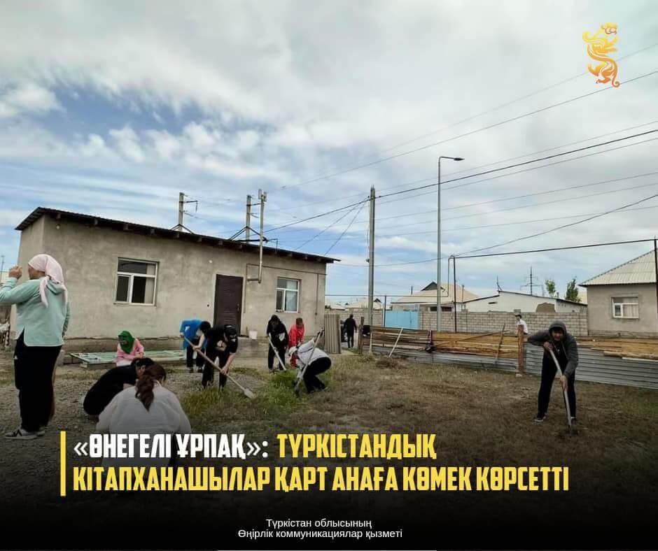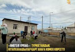 «Таза Қазақстан» республикалық экоакциясының «Өнегелі ұрпақ» апталығы аясында «Фараб» кітапханасының ұжымы Түркістан қаласындағы Бекзат мөлтек ауданының тұрғыны Керімбаева Гүлсім апаның үйінде тазалық, сырлау-әктеу жұмыстарын атқарды.