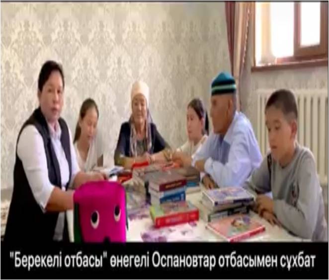 Кітапханамыздың тұрақты оқырмандары  өнегелі, үлгілі отбасы Оспанов Құлмахан ағай мен Ұлсерік апайдың отбасына барып сұхбат жүргізіп қайттық. Сұхбатта Құлмахан ағай жалпы отбасы туралы және бала тәрбиесіндегі отбасылық ұстаным, қағидалары, кітаптың бала тәрбиесіне орны  туралы айтса,Ұлсерік апай отбасындағы әженің  орны, қыз тәрбиесі туралы кеңінен  айтты. Қазақ отбасында ұрпағына ұлттық тәрбие беретін ата мен әженің орны қашанда ерекше саналған десек, Оспановтар отбасында да қазақи  ұлттық тәрбие көрініс тапқан.