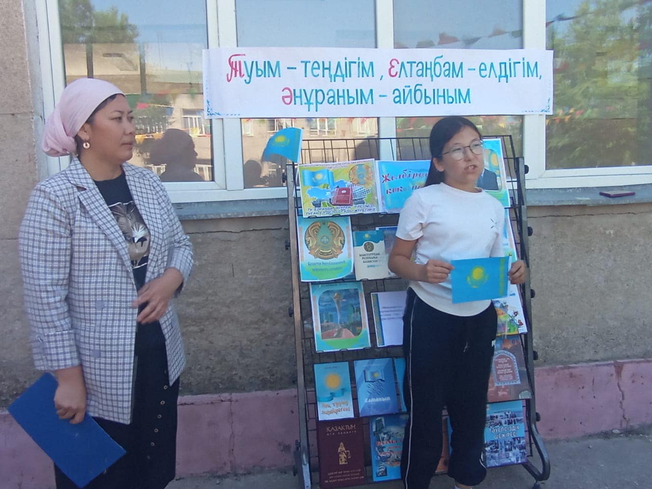 Халқымыздың мұқалмас рухын, қаһармандығы мен даналығын, асқақ арман-тілегін жеткізетін құнды белгілеріміз арайлы азаматтығымыздың кепілі-мемлекеттік рәміздер күніне орай Аудандық балалар кітапханасының ұйымдастыруымен «Туым- теңдігім, Елтаңбам-елдігім, Әнұраным-айбыным» атты патриоттық алаң өткізілді. Шараға Ш. Қалдаяқов мектеп- гимназиясының оқушылары қатысып, өз өнерлерін көрсетті.