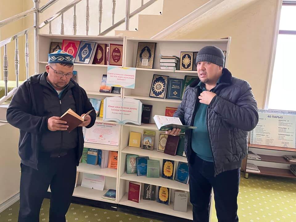 Шәуілдір ауылындағы Есен ана мешітінің жанынан ашылған кітапхана нүктесінде келушілерге сөредегі кітаптар ұсынылды