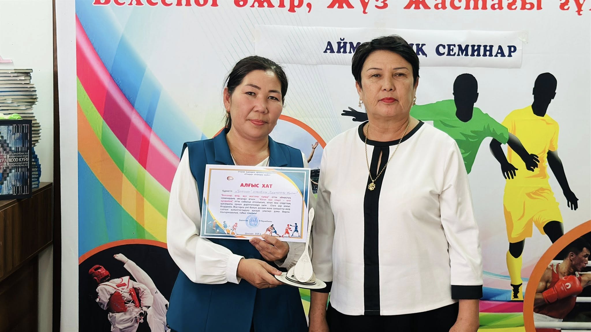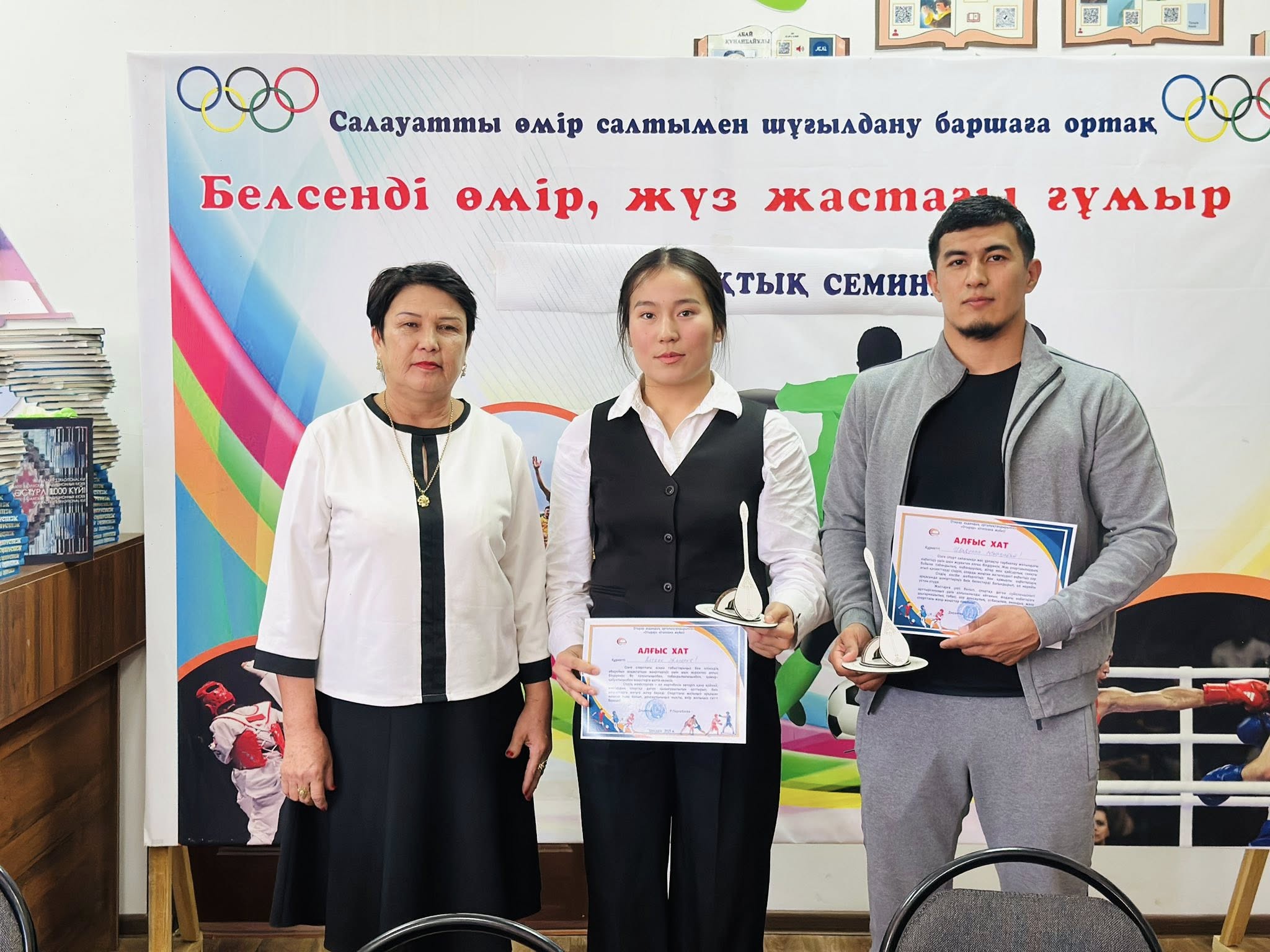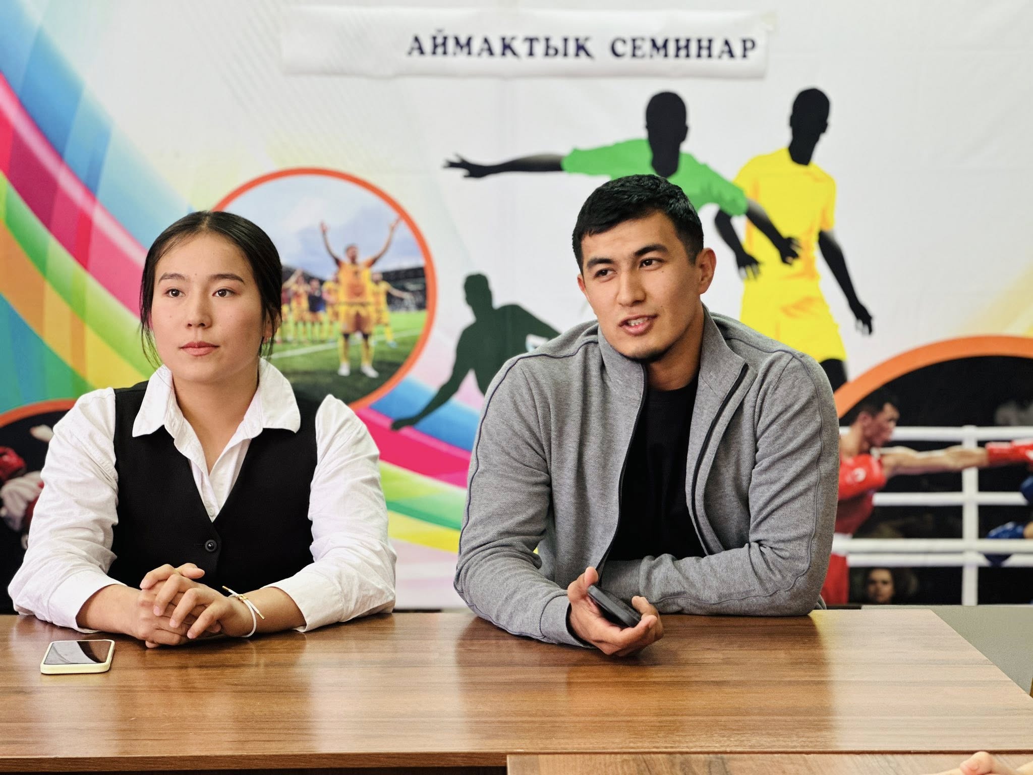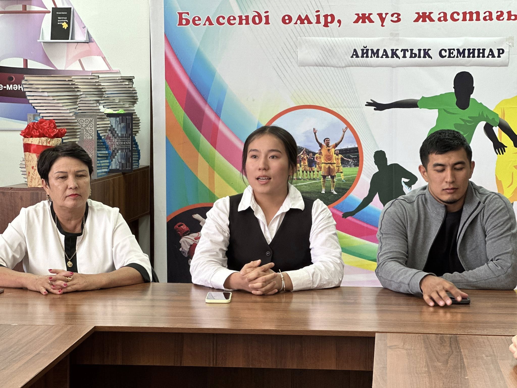 📚Семинар барысында Қазақстанның және әлемнің мақтанышына айналған, спорттағы зор жетістіктерімен ел мерейін үстем еткен әлем чемпионы, Темір ауылының тумасы Айтбек Жанерке және бапкері Ибадулла Мырзабаймен сұхбат жүргізілді. Жанерке спортқа келуі, жеңістерге жету жолындағы тынымсыз еңбегі, спорттағы қызықты сәттерімен бөлісті. Қатысушылар көкейлеріндегі сауалдарын қойып, чемпионмен еркін әңгіме өрбітті.