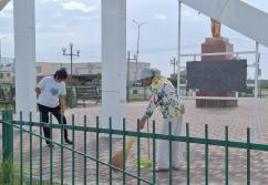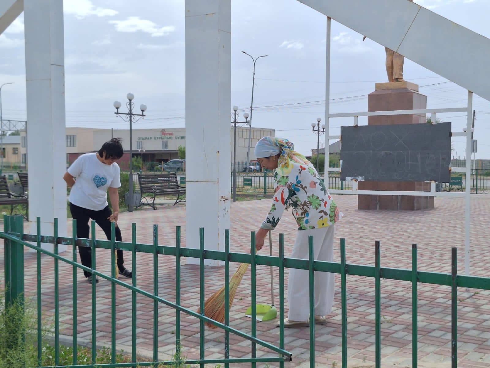 "Таза Қазақстан" республикалық экологиялық акциясы аясында киелі орындар мен ескерткіштер аумағында тазалық жұмыстарын жүргізу жоспарына сәйкес Отырар кітапханасының қызметкерлері Мемлекет және қоғам қайраткері Нұртас Оңдасынов ескерткішінің айналасында тазалық жұмыстарын жүргізді.