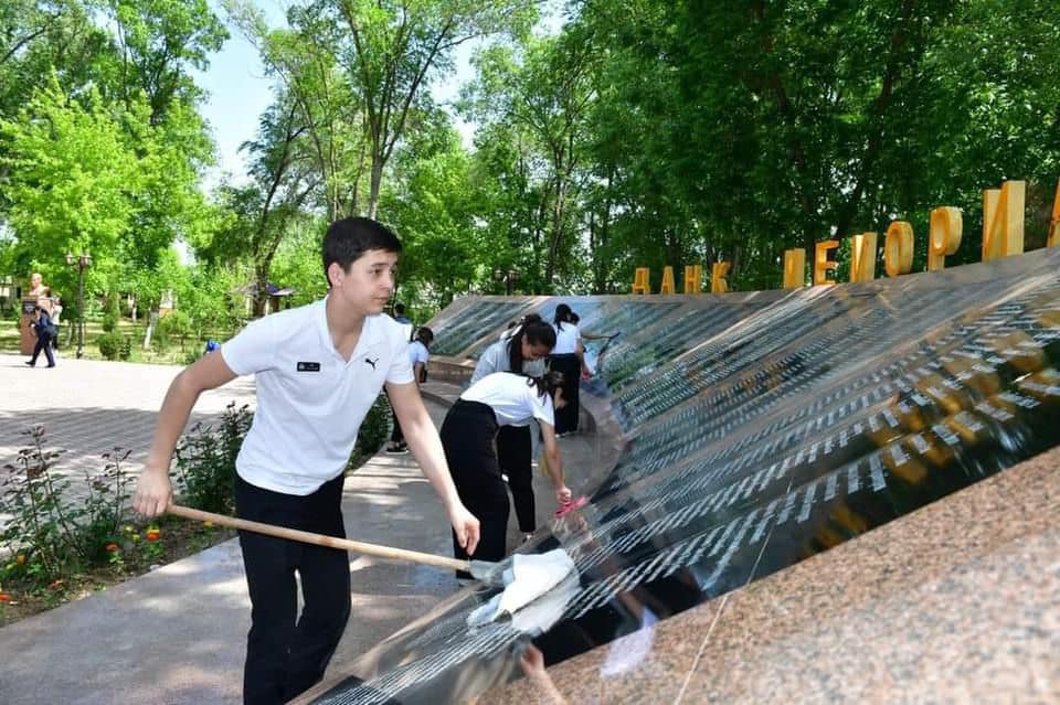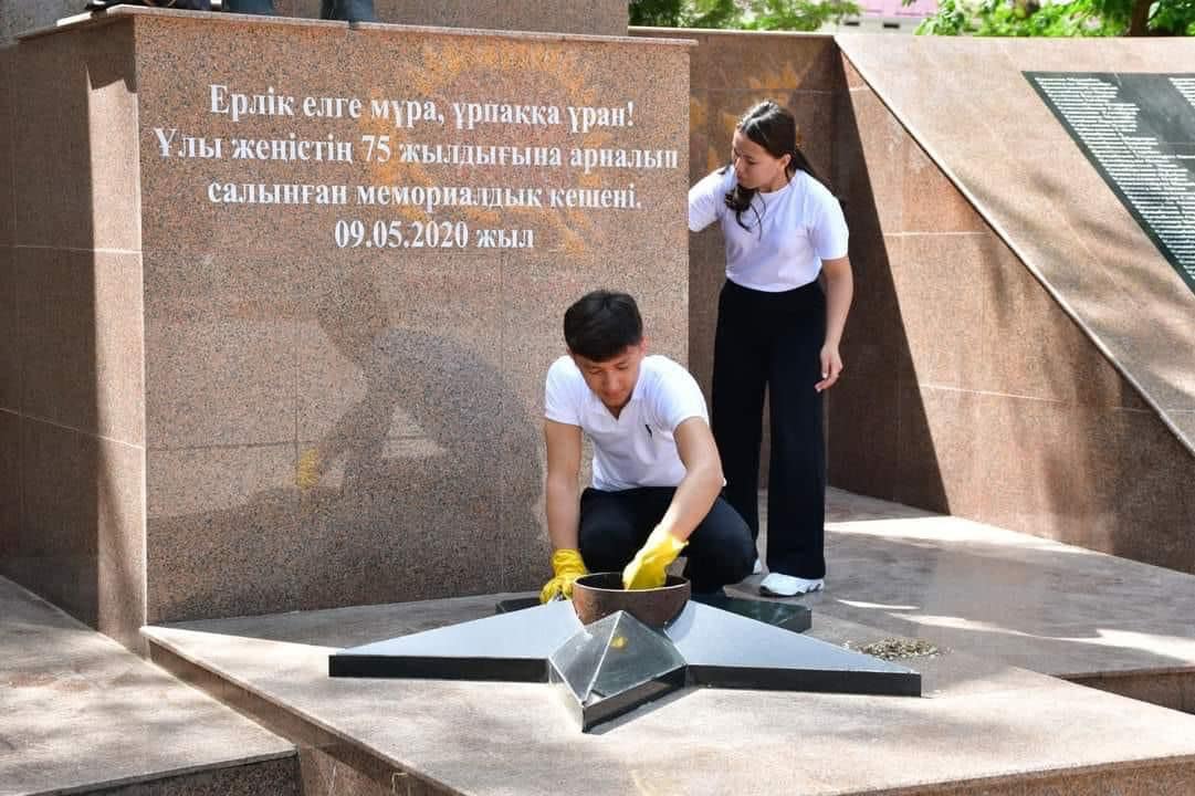 Жастар саябақтағы Ардагерлер аллеясында тазалық жұмыстарын жүргізіп, “«Даңқ» мемориалының, «Желтоқсаншылар» мен Ауған соғысы ардагерлеріне арналған ескерткіштің айналасын ретке келтірді.