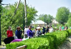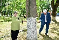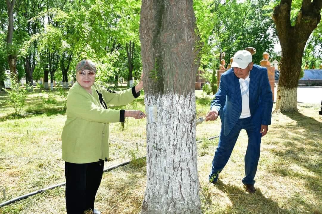 Өз кезегінде ардагерлер ағаштарды әктеп, жас көшеттердің түбін аударды.
