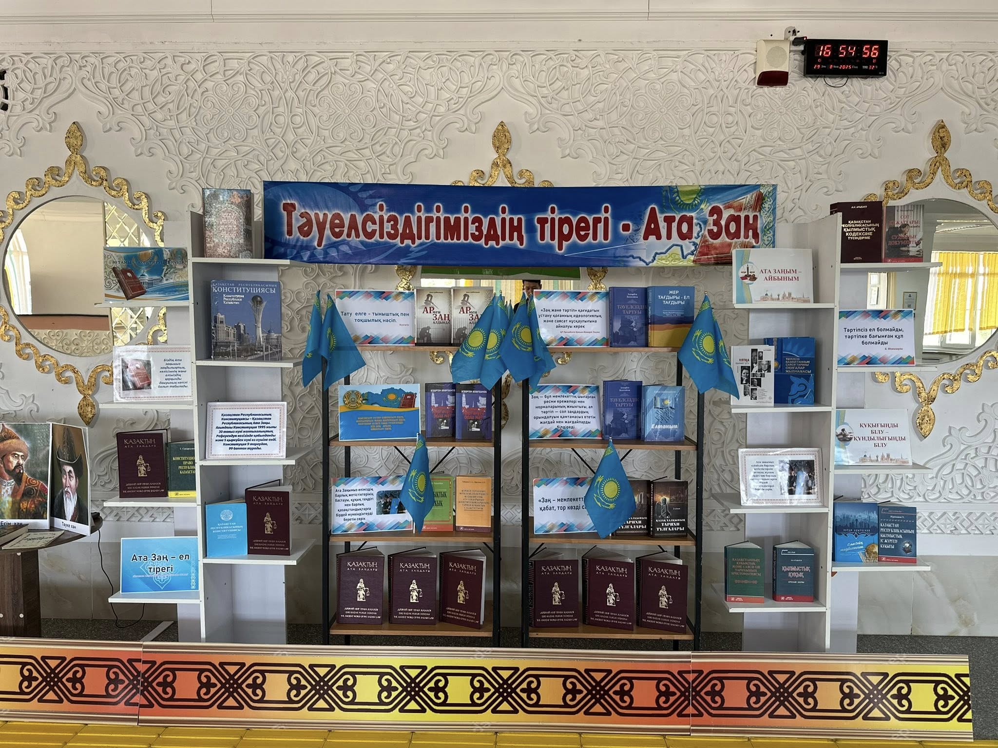 🔸Кітап көрмесінде халқымыздың тарихынан бастап, «Қасым ханның қасқа жолы», «Есім ханның ескі жолы», «Әз-Тәукенің Жеті жарғысы» секілді дала заңдары мен әділ билер шешімдерінен бастап қазіргі Конституцияға дейінгі құқықтық құндылықтар қамтылды.