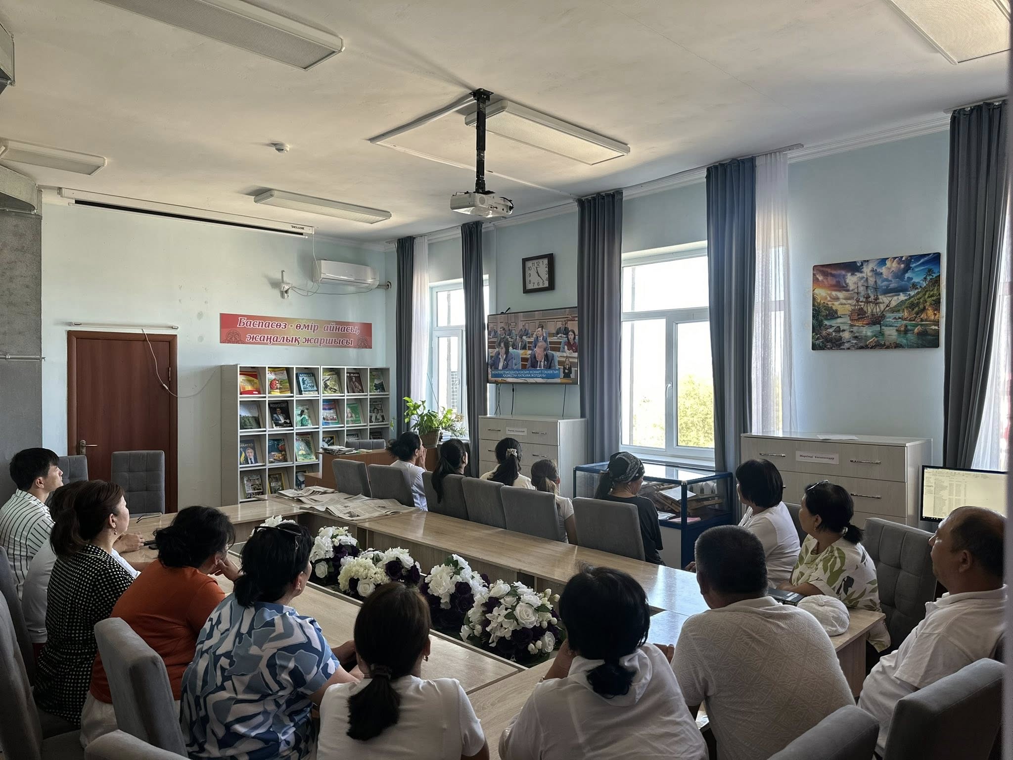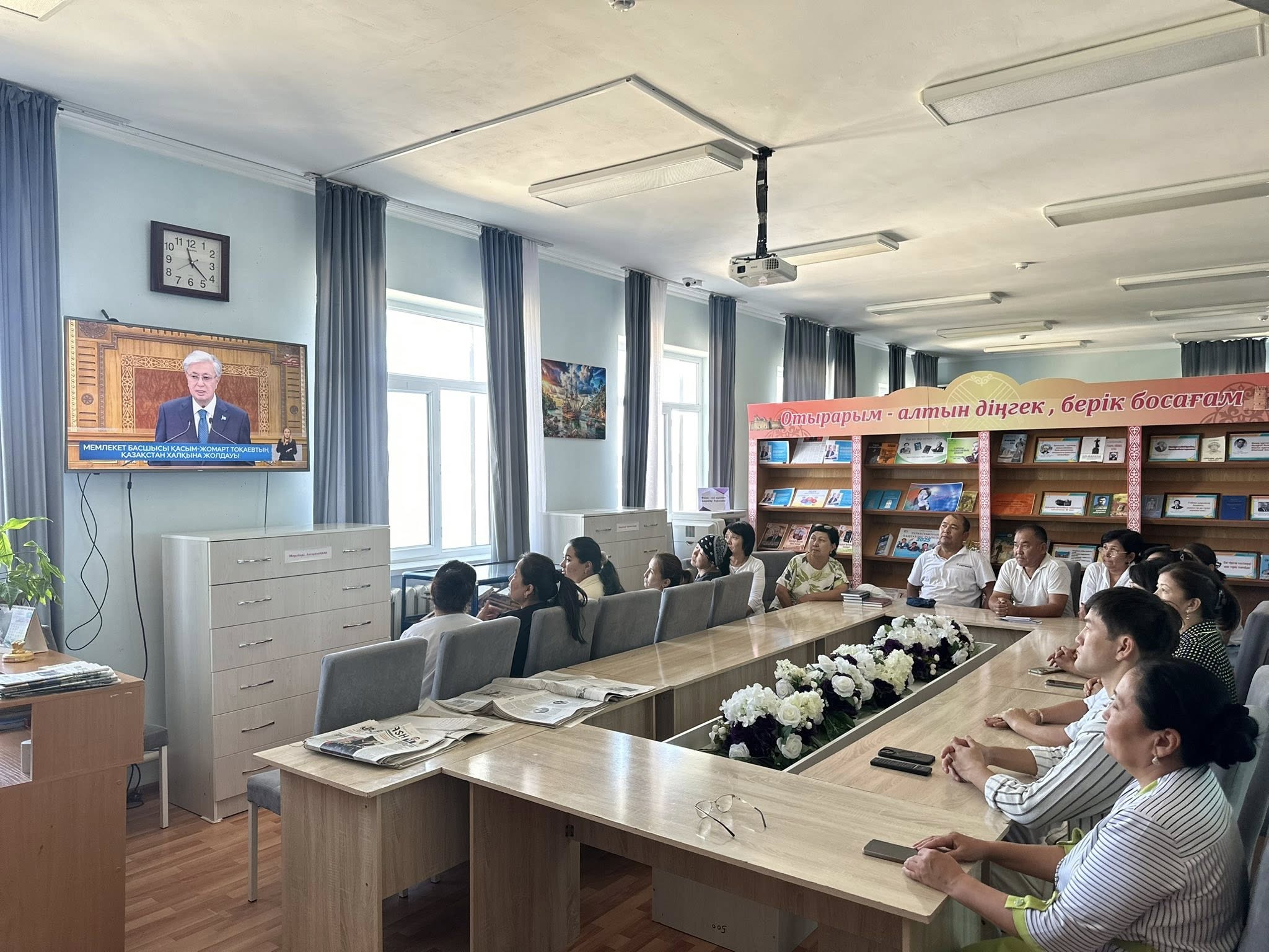 Отырар кітапханасының ұжымы Президент Қасым-Жомарт Кемелұлы Тоқаевтың "Жасанды интеллект дәуіріндегі Қазақстан: өзекті мәселелер және оны түбегейлі цифрлық өзгерістер арқылы шешу" атты Қазақстан халқына жолдауын мұқият тыңдады.