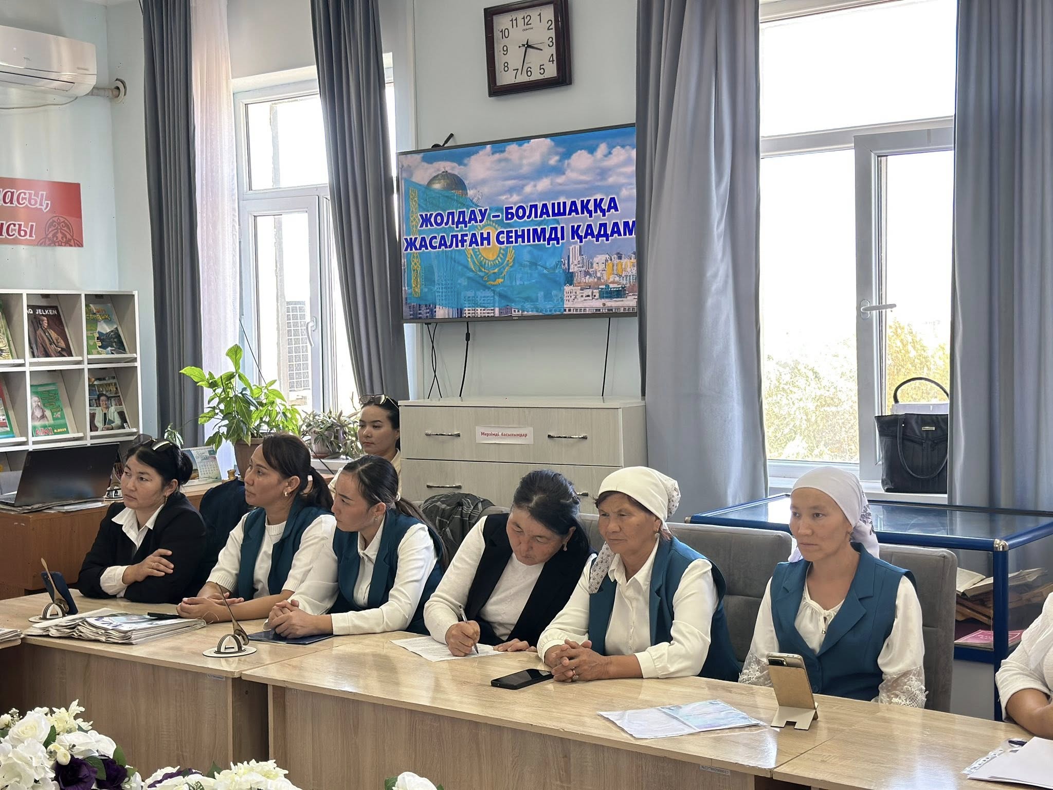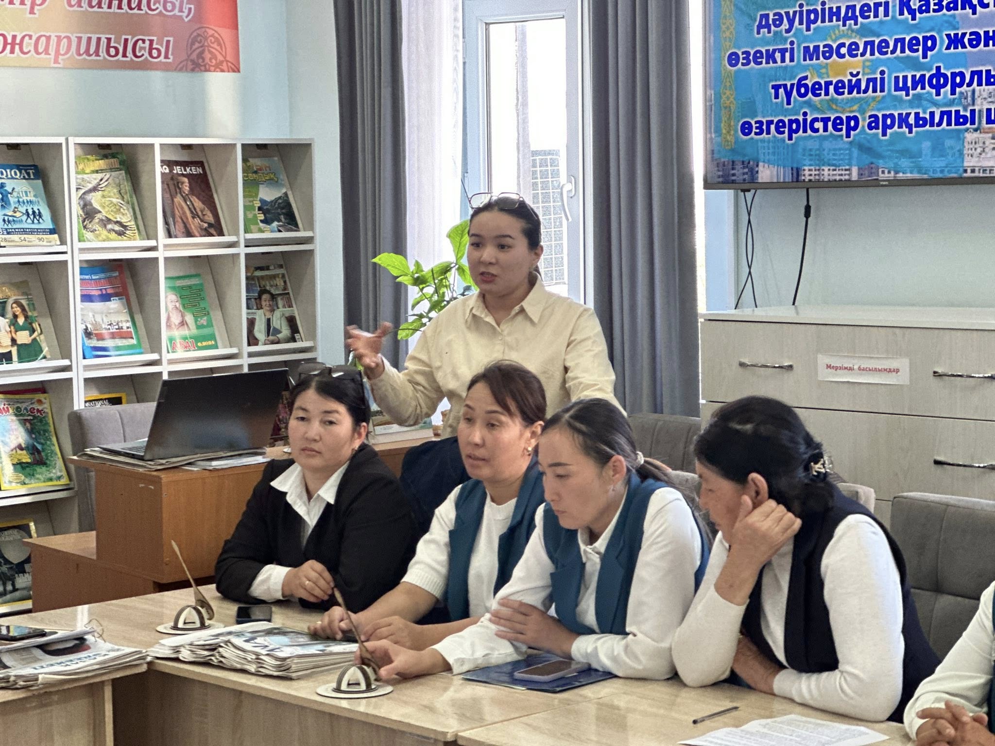 Отырар кітапханасында Президент Қасым-Жомарт Тоқаевтың "Жасанды интеллект дәуіріндегі Қазақстан: өзекті мәселелер және оны түбегейлі цифрлық өзгерістер арқылы шешу" атты Қазақстан халқына Жолдауын насихаттау мақсатында ауылдық кітапхана меңгерушілерінің қатысуымен "Жолдау - болашаққа жасалған сенімді қадам" атты ақпарат сағаты болып өтті.