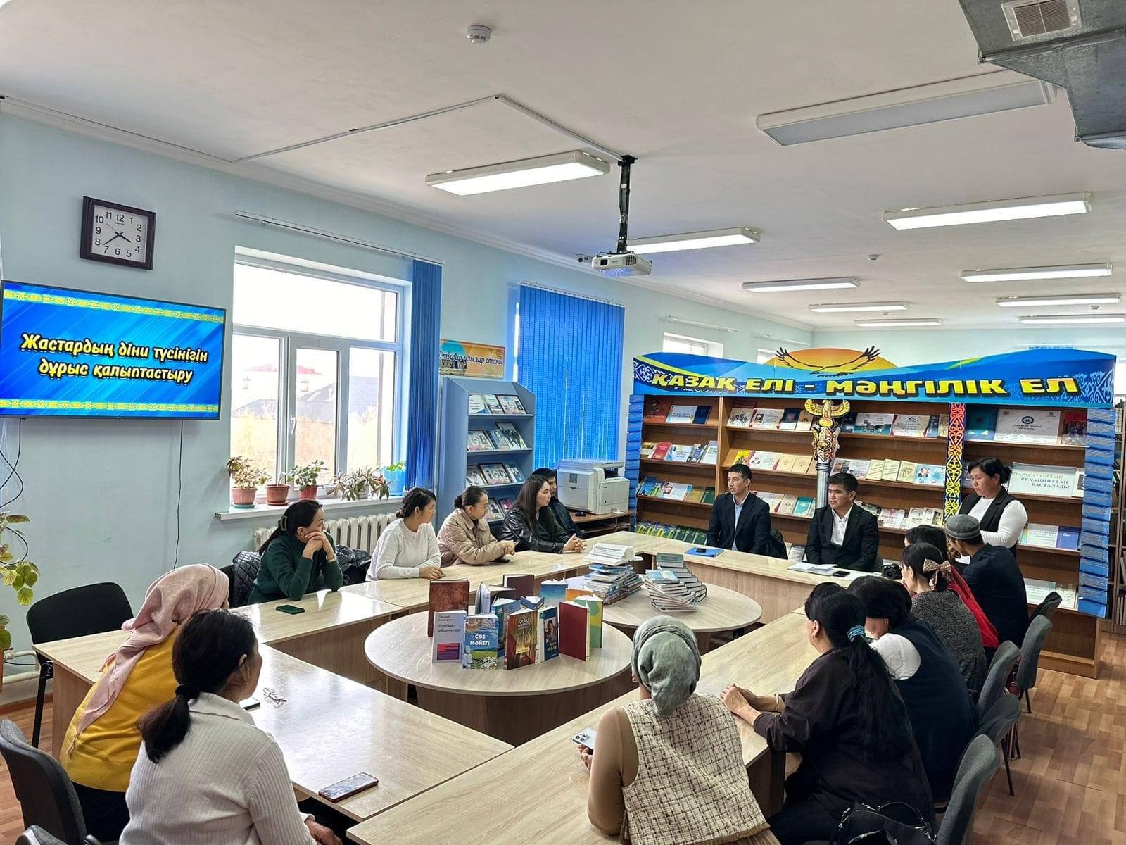 Аудандық орталық кітапханада ауыл жастары және  кітапхана қызметкерлерінің қатысуымен "Жастардың діни түсінігін дұрыс қалыптастыру" тақырыбында пікір алмасу жиыны өтті.