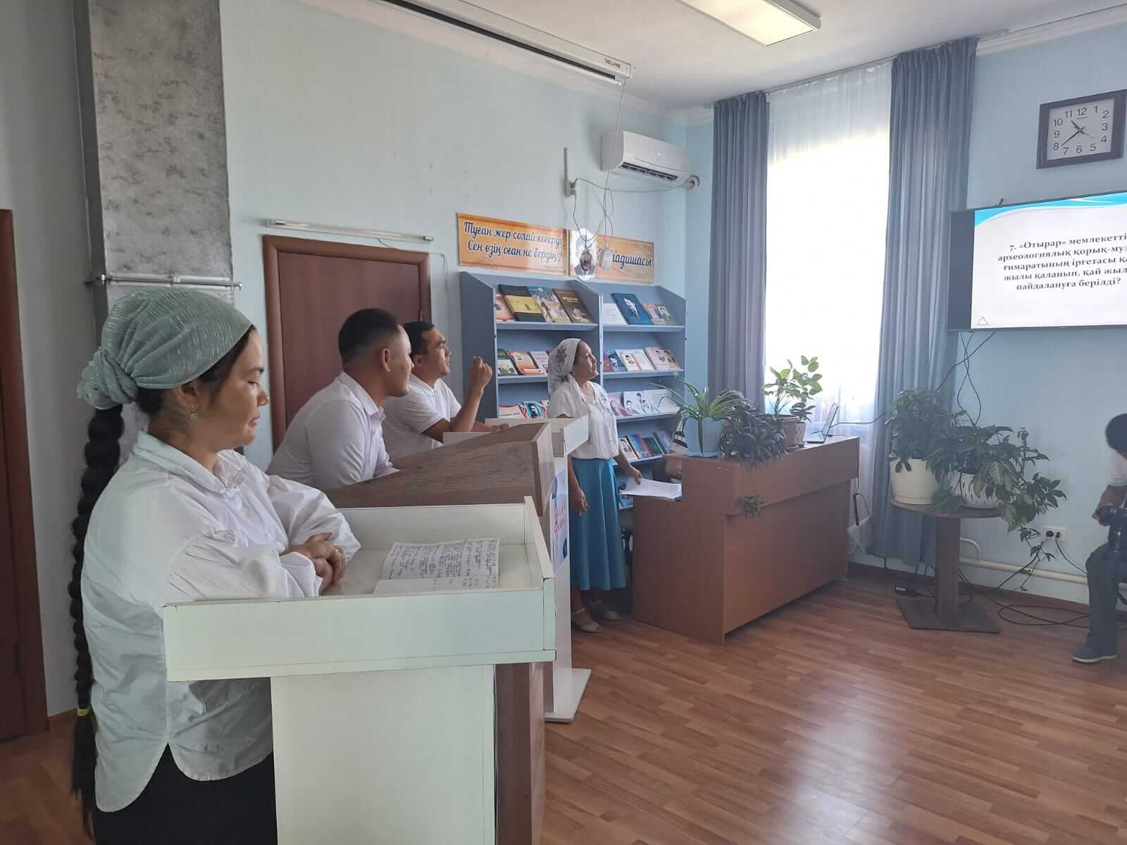 Аудандық орталық кітапханада оқырмандардың кітап оқуға деген ынтасы мен зейінін арттыру, жастарды кітапханаға көптеп тарту мақсатында, «Оқитын Отырар» жобасы аясында мемлекеттік қызметшілердің қатысуымен «Жүзден жүйрік» атты интеллектуалдық сайыс өткізілді.